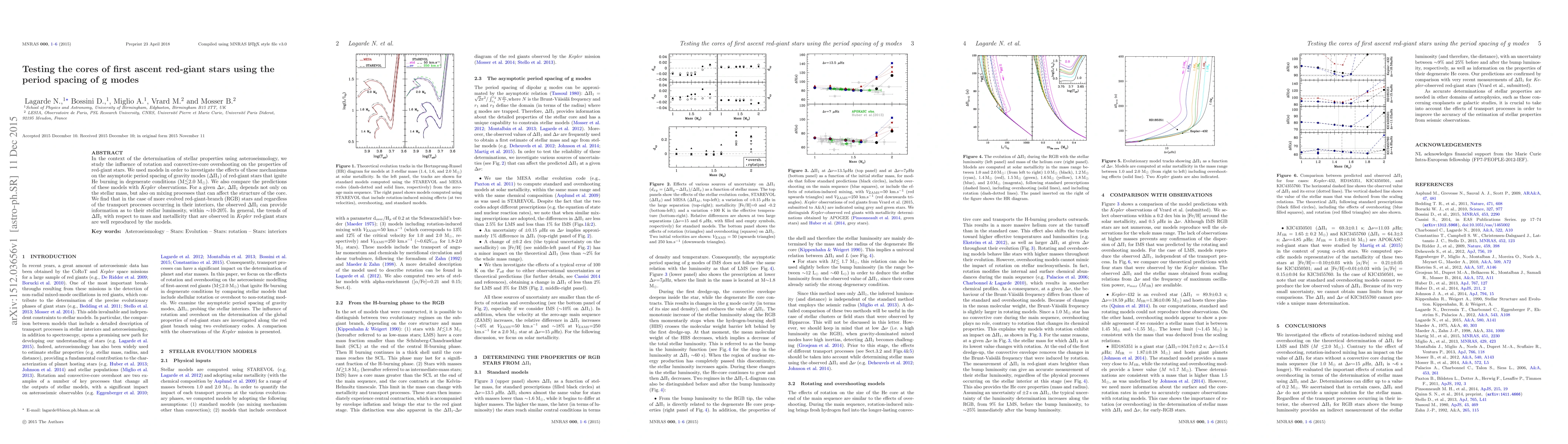 In the context of the determination of stellar properties using asteroseismology, we study the influence of rotation and convective-core overshooting on the properties of red-giant stars. We used models in order to investigate the effects of these mechanisms on the asymptotic period spacing of gravity modes ($\Delta \Pi_1$) of red-giant stars that ignite He burning in degenerate conditions (M$\lesssim$2.0 M$_{\odot}$). We also compare the predictions of these models with Kepler observations. For a given $\Delta\nu$, $\Delta \Pi_1$ depends not only on the stellar mass, but also on mixing processes that can affect the structure of the core. We find that in the case of more evolved red-giant-branch (RGB) stars and regardless of the transport processes occurring in their interiors, the observed $\Delta \Pi_1$ can provide information as to their stellar luminosity, within ~10-20%. In general, the trends of $\Delta \Pi_1$ with respect to mass and metallicity that are observed in Kepler red-giant stars are well reproduced by the models.