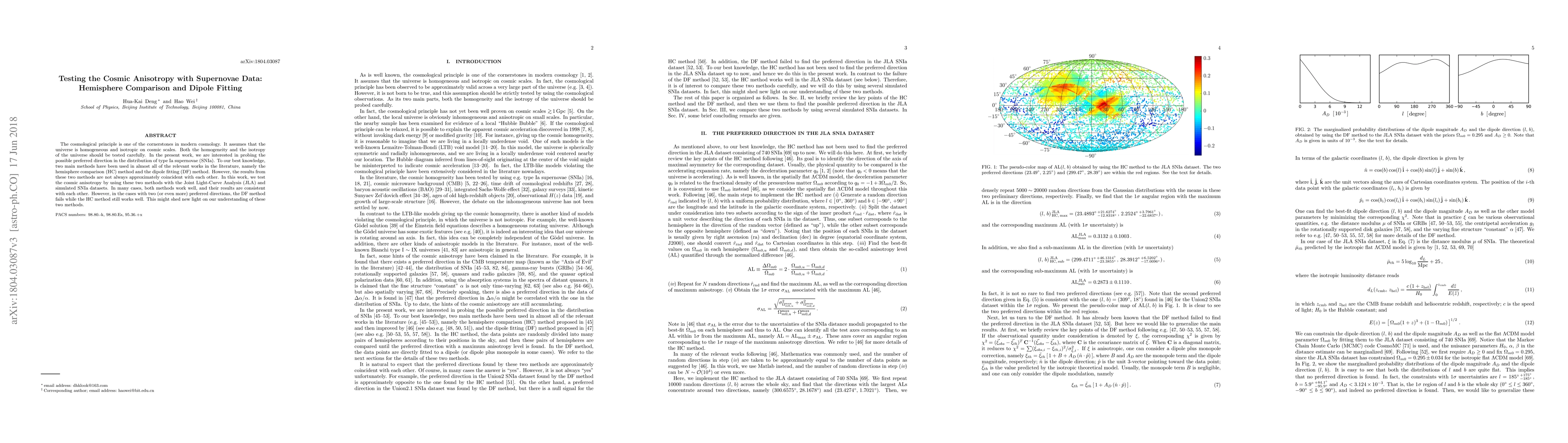 The cosmological principle is one of the cornerstones in modern cosmology. It assumes that the universe is homogeneous and isotropic on cosmic scales. Both the homogeneity and the isotropy of the universe should be tested carefully. In the present work, we are interested in probing the possible preferred direction in the distribution of type Ia supernovae (SNIa). To our best knowledge, two main methods have been used in almost all of the relevant works in the literature, namely the hemisphere comparison (HC) method and the dipole fitting (DF) method. However, the results from these two methods are not always approximately coincident with each other. In this work, we test the cosmic anisotropy by using these two methods with the Joint Light-Curve Analysis (JLA) and simulated SNIa datasets. In many cases, both methods work well, and their results are consistent with each other. However, in the cases with two (or even more) preferred directions, the DF method fails while the HC method still works well. This might shed new light on our understanding of these two methods.