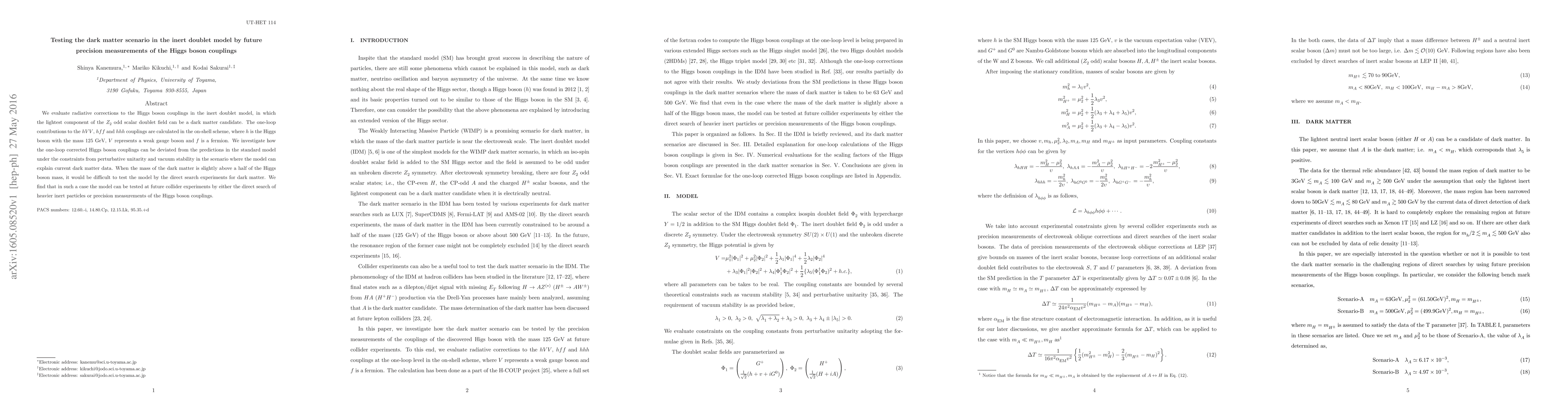 This paper evaluates radiative corrections to Higgs boson couplings in the inert doublet model, where the lightest scalar can be a dark matter candidate. It finds that future collider experiments can test the model by either searching for heavier inert particles or through precision measurements of Higgs boson couplings, especially when dark matter mass is slightly above half the Higgs boson mass.