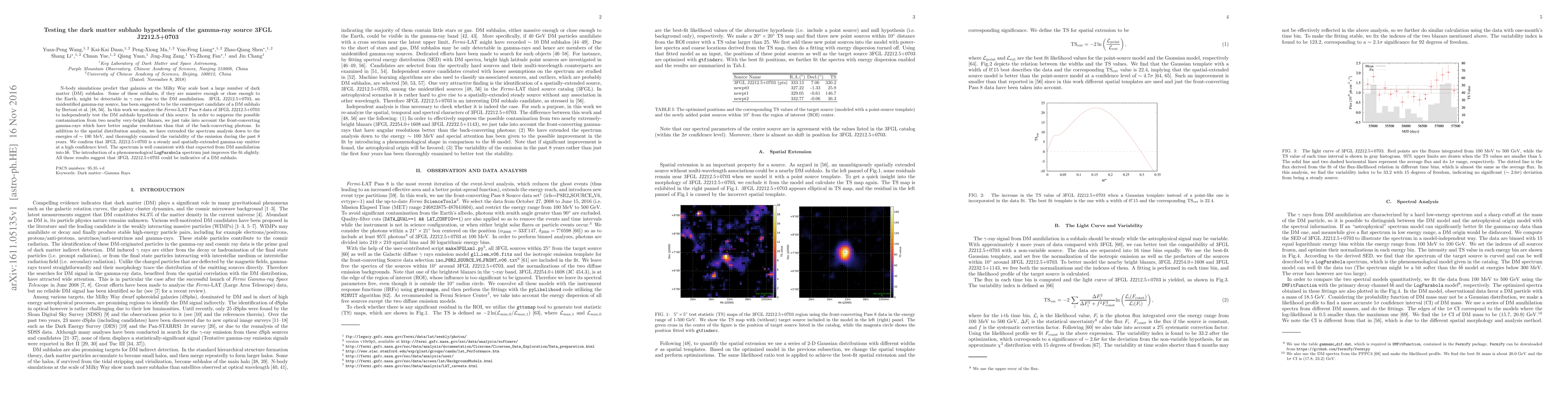 This research analyzes Fermi-LAT data to test the hypothesis that the gamma-ray source 3FGL J2212.5+0703 is a dark matter subhalo. The study finds the source to be steady, spatially extended, and consistent with a spectrum expected from dark matter annihilation, supporting the subhalo hypothesis.
