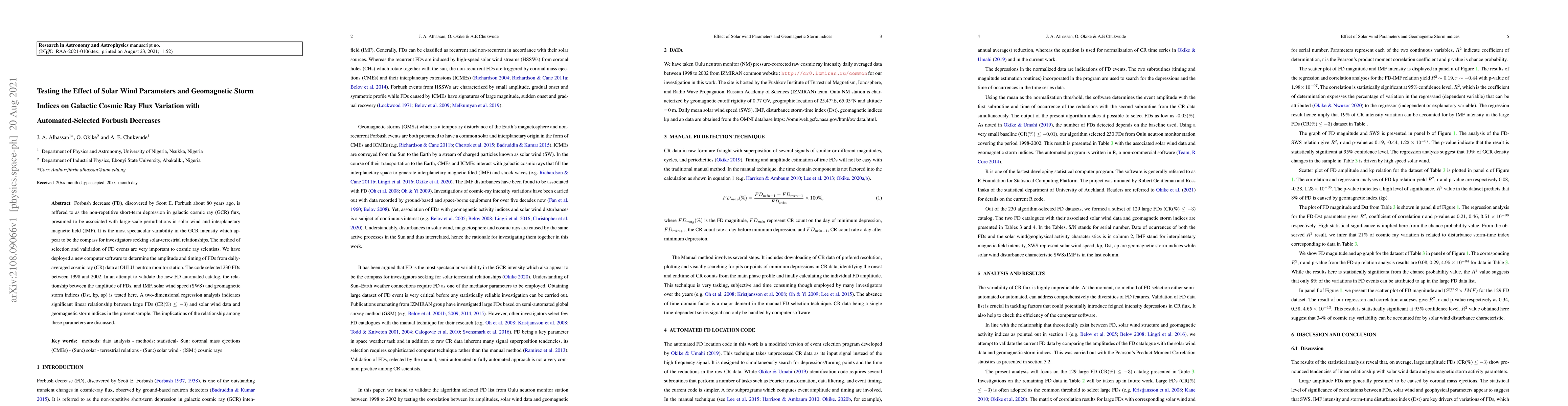This paper investigates the relationship between Forbush decreases (FDs) in galactic cosmic ray flux and solar wind parameters, interplanetary magnetic field (IMF), and geomagnetic storm indices. Using automated software, 230 FDs were identified from cosmic ray data, and a regression analysis found significant linear correlations between large FDs and solar wind speed, IMF, and geomagnetic storm indices, highlighting the importance of these parameters in cosmic ray variability.