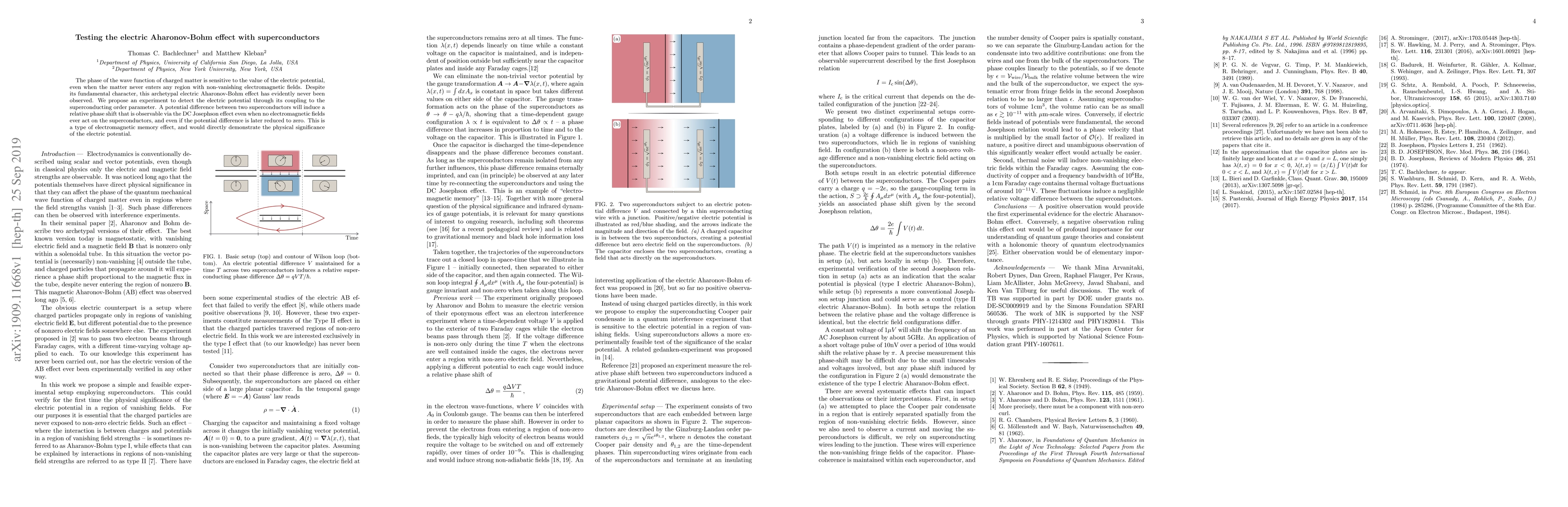 Researchers propose an experiment to detect the electric Aharonov-Bohm effect using superconductors, which would directly demonstrate the physical significance of electric potential, even in regions without electromagnetic fields.
