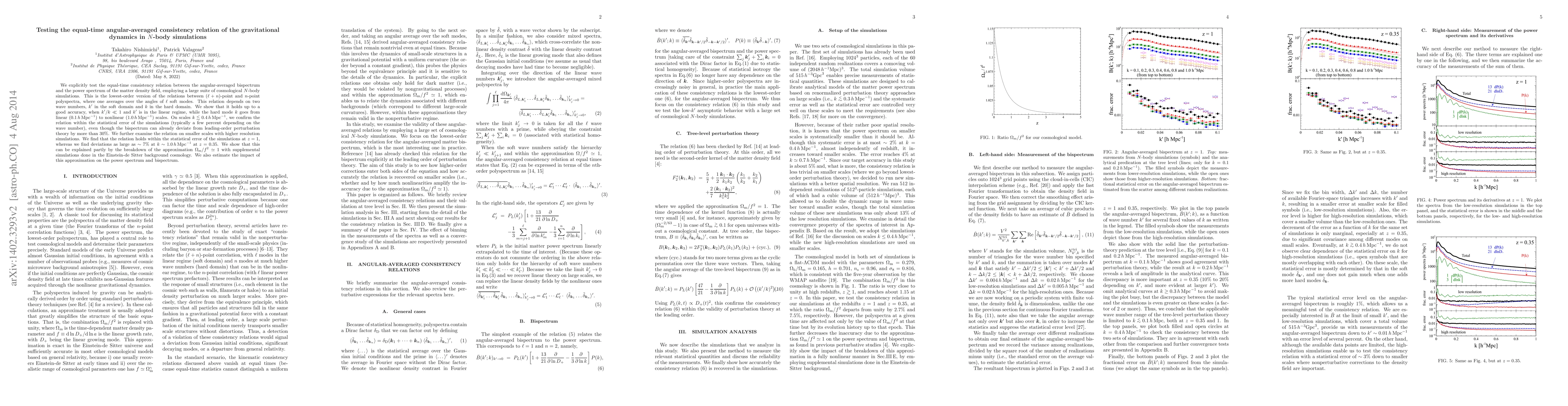 This paper tests the equal-time angular-averaged consistency relation between the bispectrum and power spectrum in cosmological $N$-body simulations, confirming its accuracy on large scales. The relation holds within statistical errors on scales $k\lesssim 0.4\,h\mathrm{Mpc}^{-1}$, but deviations appear on smaller scales due to the breakdown of the $\Omega_\mathrm{m}/f^2\simeq1$ approximation.