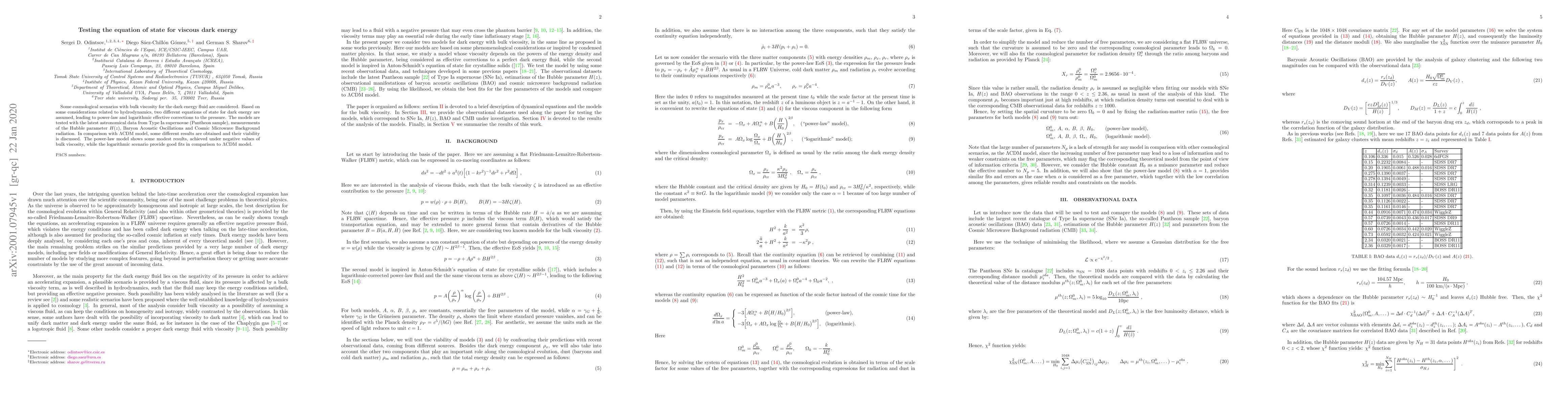 Some cosmological scenarios with bulk viscosity for the dark energy fluid are considered. Based on some considerations related to hydrodynamics, two different equations of state for dark energy are assumed, leading to power-law and logarithmic effective corrections to the pressure. The models are tested with the latest astronomical data from Type Ia supernovae (Pantheon sample), measurements of the Hubble parameter $H(z)$, Baryon Acoustic Oscillations and Cosmic Microwave Background radiation. In comparison with $\Lambda$CDM model, some different results are obtained and their viability is discussed. The power-law model shows some modest results, achieved under negative values of bulk viscosity, while the logarithmic scenario provide good fits in comparison to $\Lambda$CDM model.