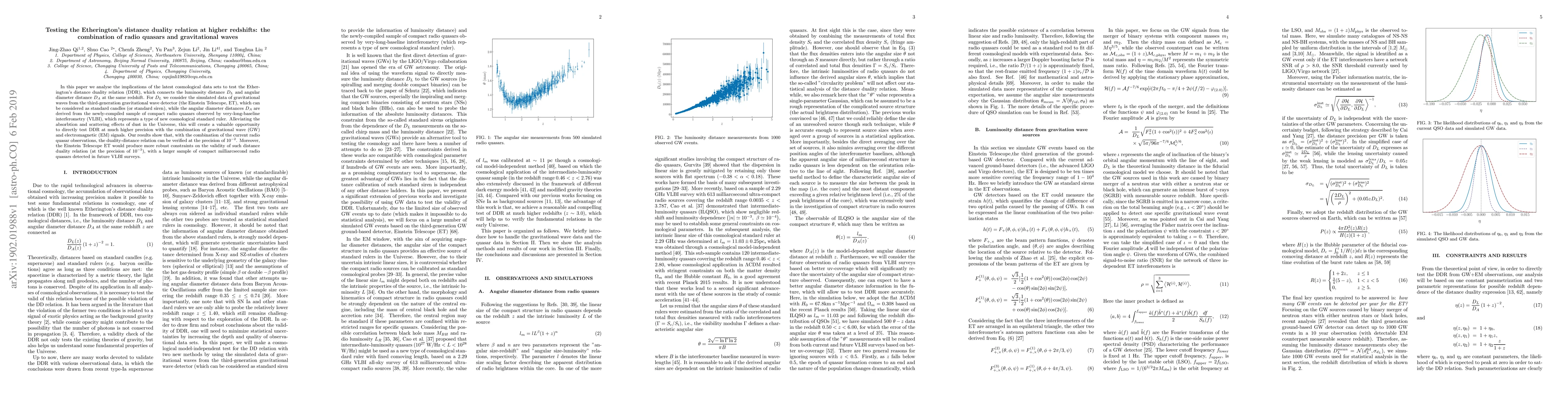 This paper tests Etherington's distance duality relation using gravitational wave data from the Einstein Telescope and radio quasar observations from VLBI, achieving a precision of $10^{-2}$ and promising even higher precision of $10^{-3}$ with future data.