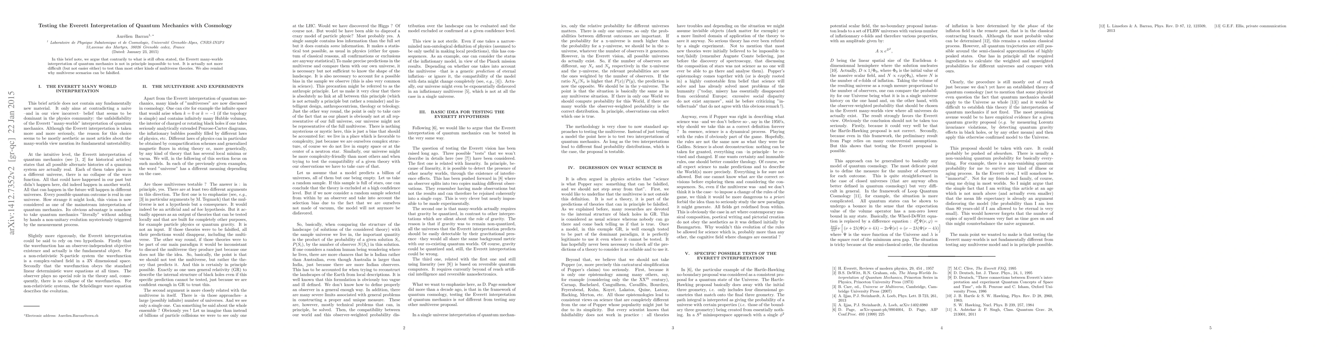 Summary: This paper argues that the Everett many-worlds interpretation of quantum mechanics can, in principle, be tested, contrary to common belief, and is not more challenging to test than other multiverse theories. It also clarifies the conditions under which multiverse scenarios can be falsified.