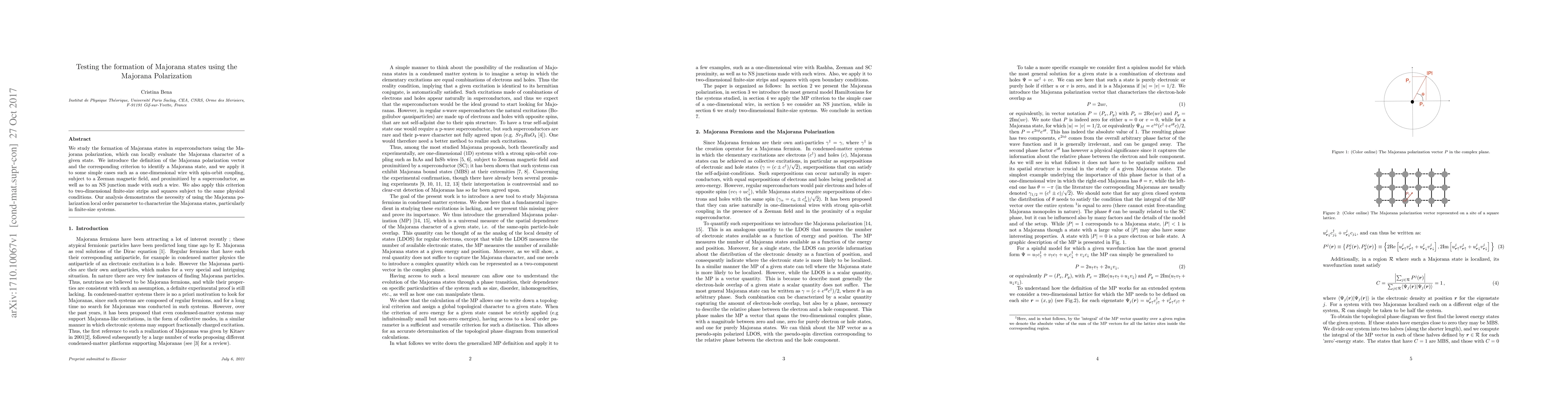 We study the formation of Majorana states in superconductors using the Majorana polarization, which can locally evaluate the Majorana character of a given state. We introduce the definition of the Majorana polarization vector and the corresponding criterion to identify a Majorana state, and we apply it to some simple cases such as a one-dimensional wire with spin-orbit coupling, subject to a Zeeman magnetic field, and proximitized by a superconductor, as well as to an NS junction made with such a wire. We also apply this criterion to two-dimensional finite-size strips and squares subject to the same physical conditions. Our analysis demonstrates the necessity of using the Majorana polarization local order parameter to characterize the Majorana states, particularly in finite-size systems.