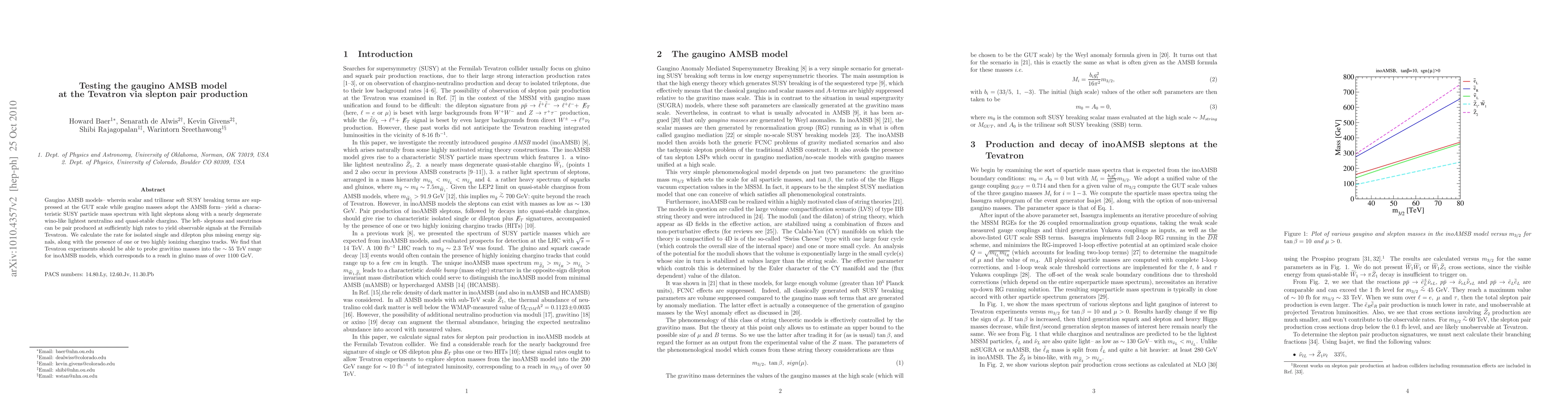 Gaugino AMSB models-- wherein scalar and trilinear soft SUSY breaking terms are suppressed at the GUT scale while gaugino masses adopt the AMSB form-- yield a characteristic SUSY particle mass spectrum with light sleptons along with a nearly degenerate wino-like lightest neutralino and quasi-stable chargino. The left- sleptons and sneutrinos can be pair produced at sufficiently high rates to yield observable signals at the Fermilab Tevatron. We calculate the rate for isolated single and dilepton plus missing energy signals, along with the presence of one or two highly ionizing chargino tracks. We find that Tevatron experiments should be able to probe gravitino masses into the ~55 TeV range for inoAMSB models, which corresponds to a reach in gluino mass of over 1100 GeV.