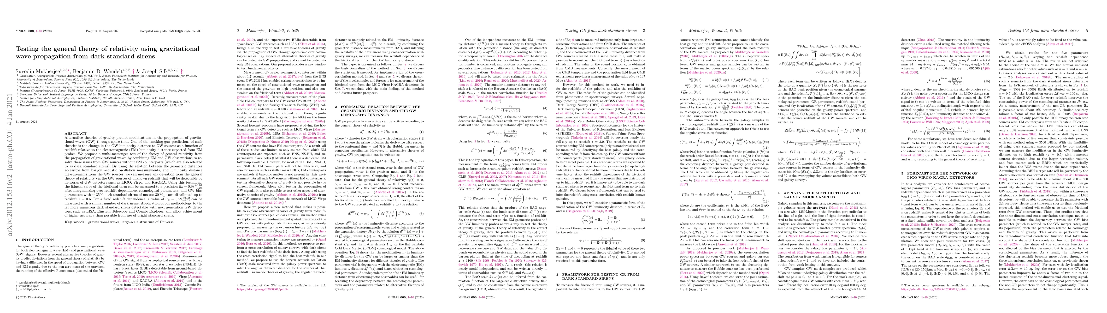 This paper proposes a method to test general relativity using gravitational wave (GW) propagation from "dark standard sirens"—GW sources without electromagnetic counterparts. By combining GW and electromagnetic observations, the study aims to detect deviations in the GW luminosity distance relative to the expected EM distance, thereby testing the general theory of relativity with high precision using future GW detectors.
