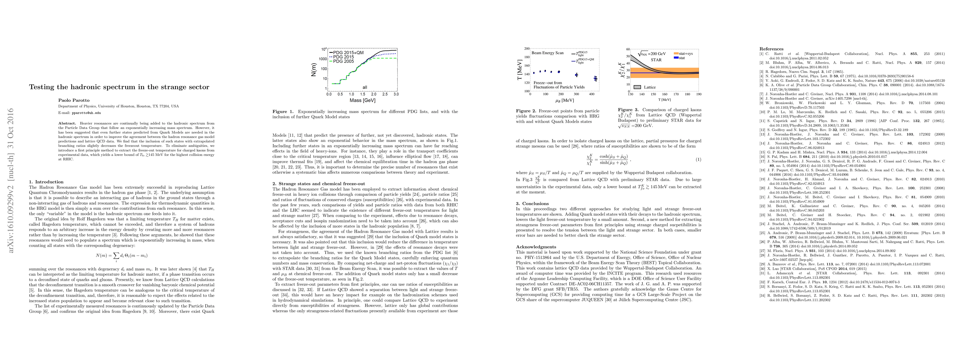 Heavier resonances are continually being added to the hadronic spectrum from the Particle Data Group that follow an exponentially increasing mass spectrum. However, it has been suggested that even further states predicted from Quark Models are needed in the hadronic spectrum in order to improve the agreement between the hadron resonance gas model predictions and lattice QCD data. We find that the inclusion of such states with extrapolated branching ratios slightly decreases the freezeout temperature. To eliminate ambiguities, we introduce a first principle method to extract the freeze-out temperature for charged kaons from experimental data, which yields a lower bound of $T_{\text{fo}} \gtrsim $145 MeV for the highest collision energy at RHIC.