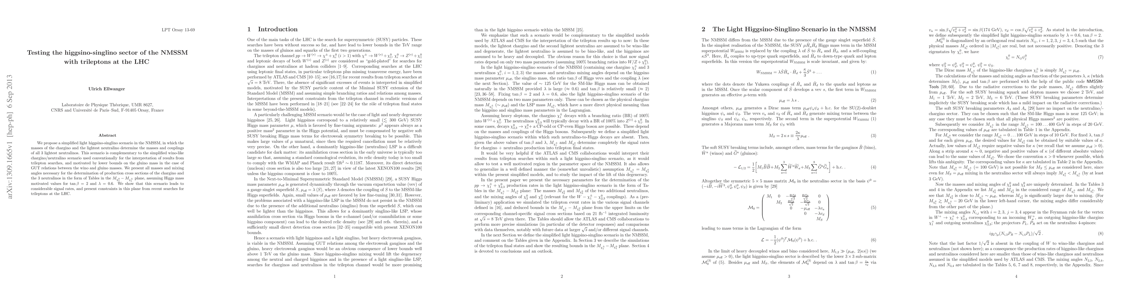 This paper proposes a simplified higgsino-singlino scenario in the NMSSM, contrasting it with conventional wino-like models, and presents tables for chargino and neutralino masses and cross sections. It demonstrates significant signal rates in trilepton searches at the LHC and discusses constraints from recent LHC data.
