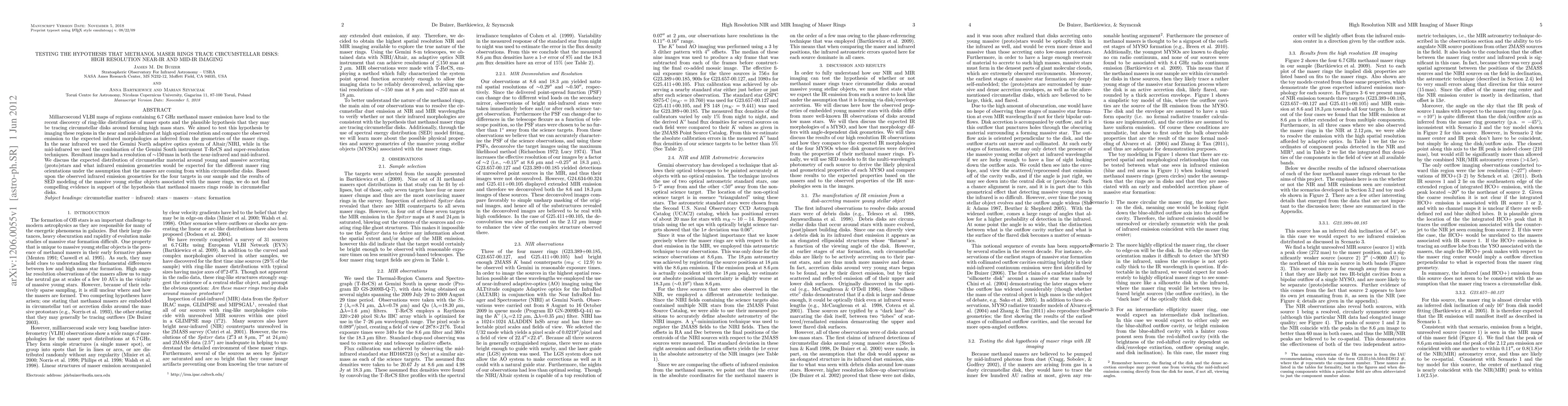 A study tested the hypothesis that methanol maser rings form circumstellar disks around forming high-mass stars using near-IR and mid-IR imaging; no compelling evidence in support of this hypothesis was found.