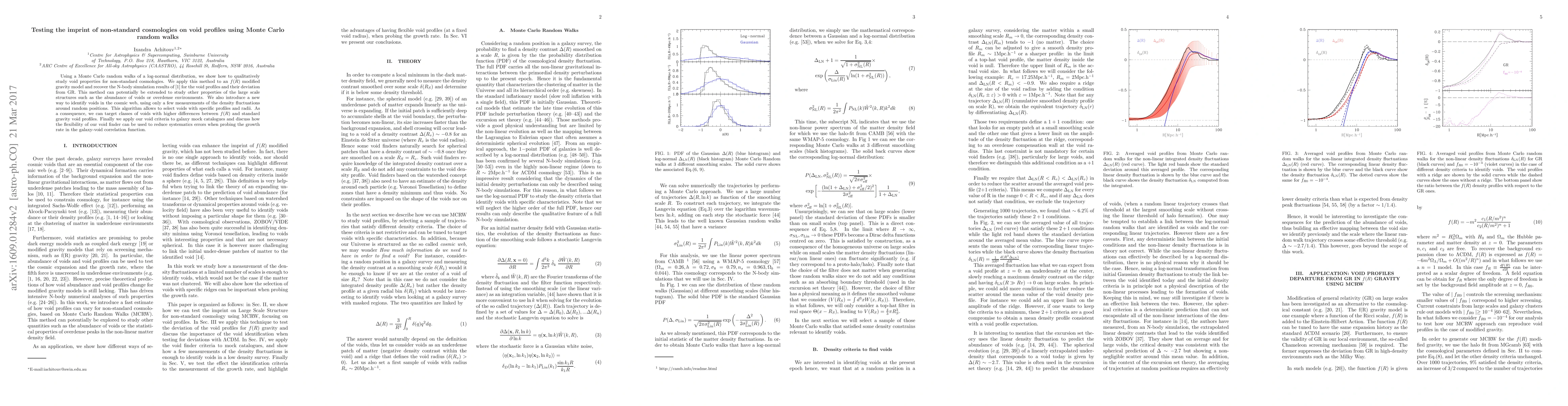 This paper uses Monte Carlo random walks to study void properties in non-standard cosmologies, specifically applying the method to an f(R) modified gravity model. The authors demonstrate the ability to identify voids with specific profiles and radii, and discuss its potential to reduce systematic errors in galaxy-void correlation studies.