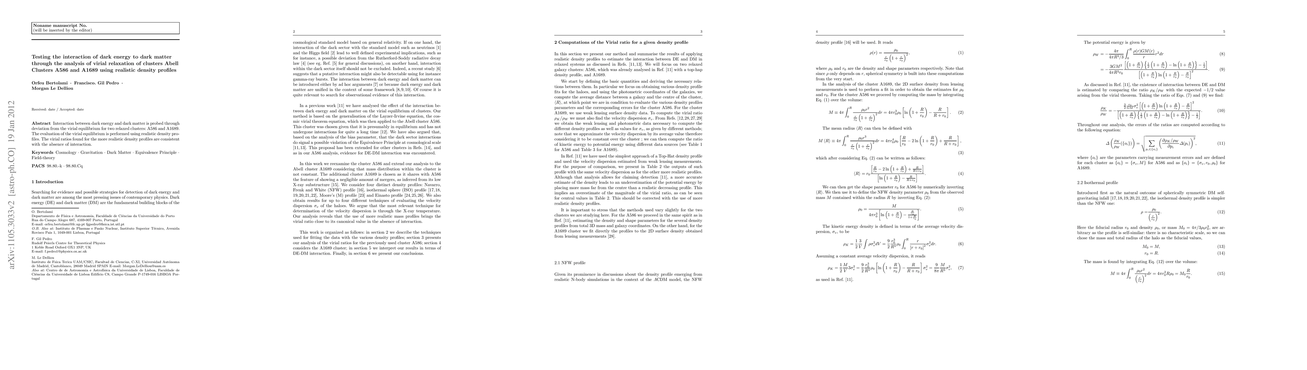 Summary: This study investigates the interaction between dark energy and dark matter by analyzing the virial relaxation of Abell clusters A586 and A1689, finding no evidence of interaction as the virial ratios align with expectations from realistic density profiles.