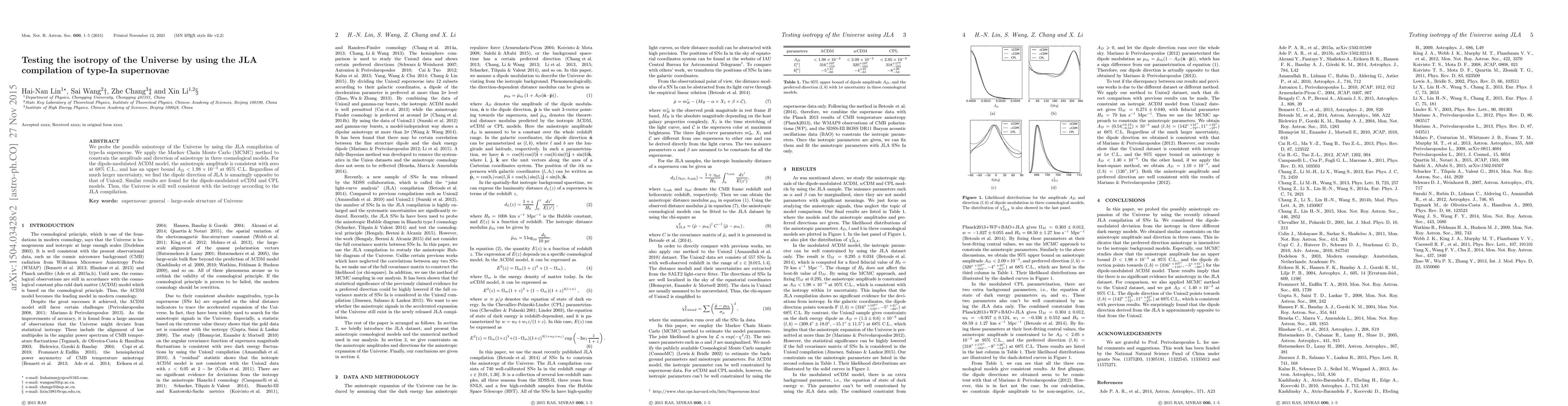 Researchers used a large compilation of type-Ia supernovae to test if the universe is isotropic, finding no evidence for anisotropy in three different cosmological models.