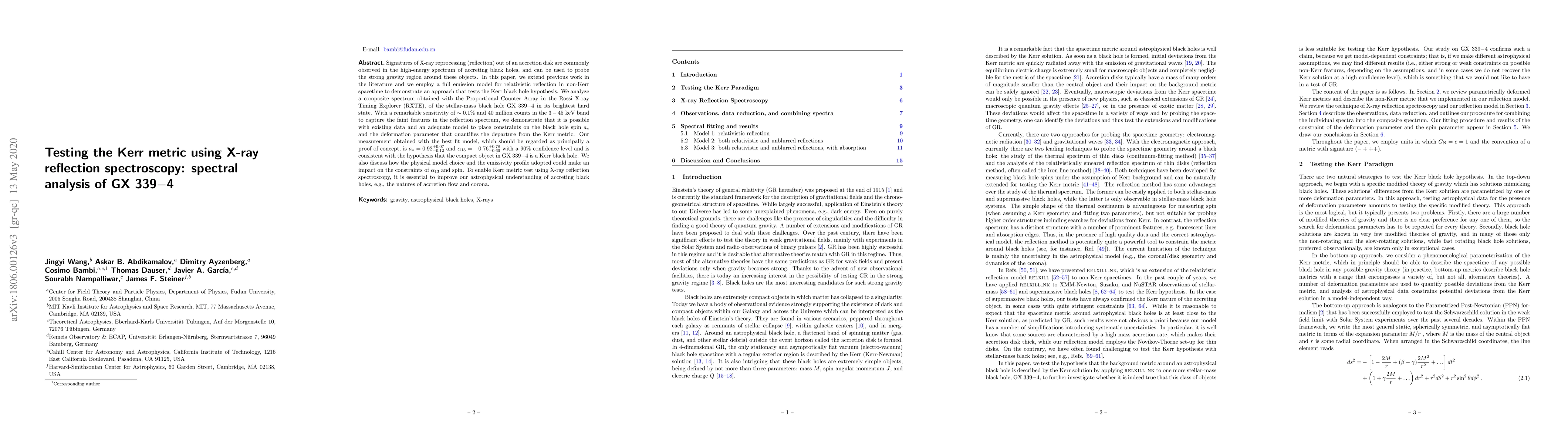 This paper tests the Kerr black hole hypothesis using X-ray reflection spectroscopy of GX 339-4, finding a black hole spin $a_*=0.92^{+0.07}_{-0.12}$ and a deformation parameter $\alpha_{13}=-0.76^{+0.78}_{-0.60}$, consistent with a Kerr black hole, while highlighting the need for improved astrophysical models to refine these measurements.