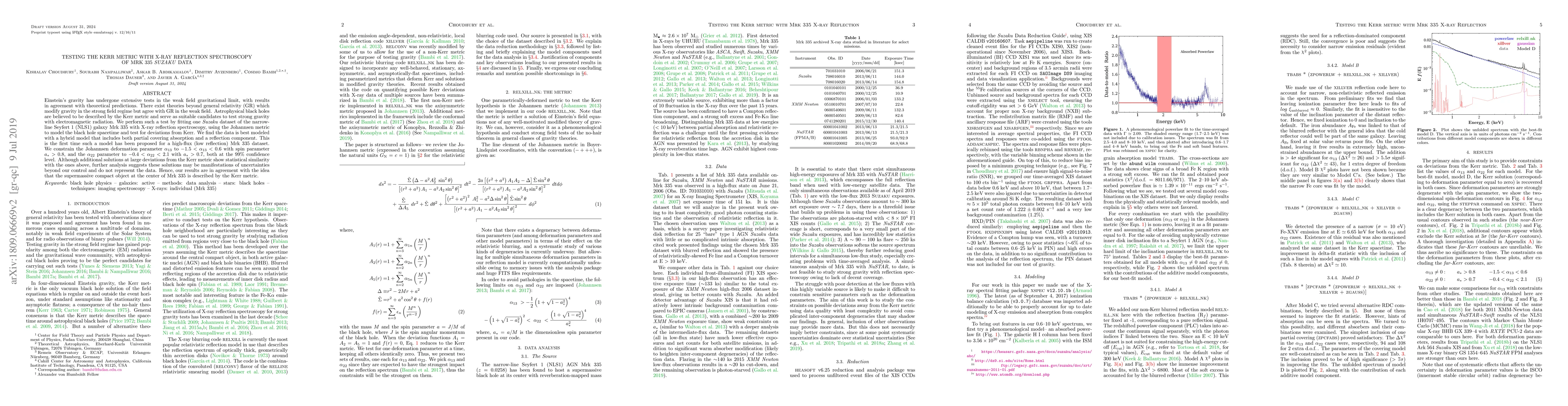 Researchers used X-ray reflection spectroscopy to test if a black hole at the center of galaxy Mrk 335 follows the Kerr metric, finding that it does with certain constraints, supporting current understanding of supermassive compact objects.