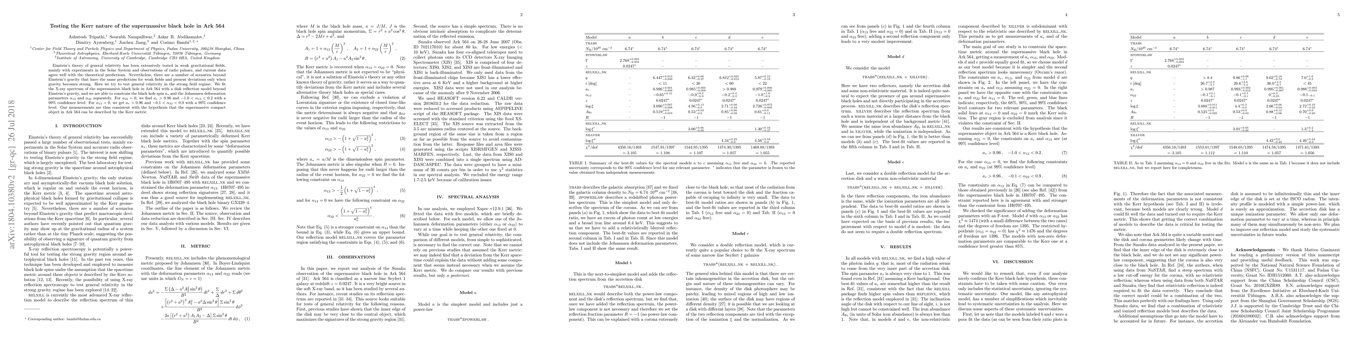 The study tests Einstein's theory of gravity near a supermassive black hole in Ark 564 by analyzing X-ray data, finding results consistent with the black hole being described by the Kerr (standard) black hole model. This supports Einstein's predictions even in strong gravitational fields.