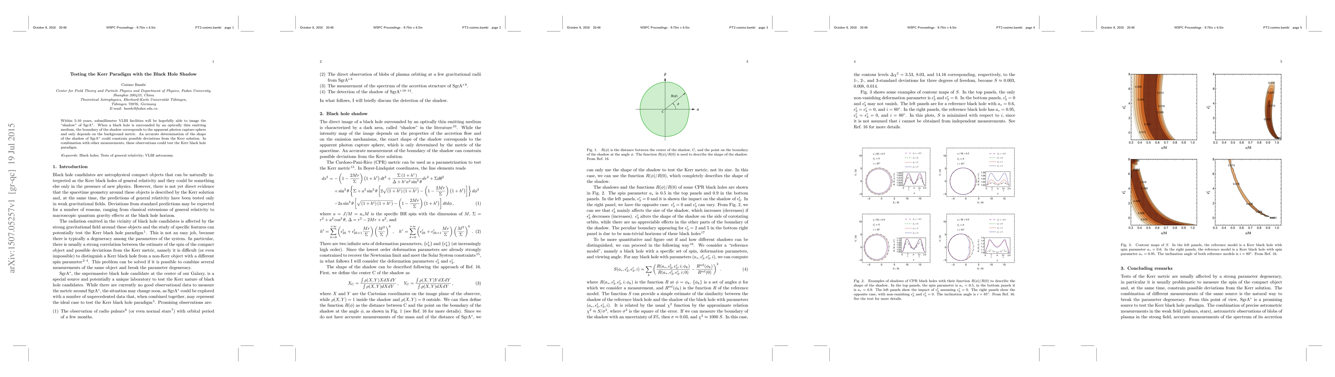 Within 5-10 years, submillimeter VLBI facilities will be hopefully able to image the "shadow" of SgrA$^*$. When a black hole is surrounded by an optically thin emitting medium, the boundary of the shadow corresponds to the apparent photon capture sphere and only depends on the background metric. An accurate determination of the shape of the shadow of SgrA$^*$ could constrain possible deviations from the Kerr solution. In combination with other measurements, these observations could test the Kerr black hole paradigm.