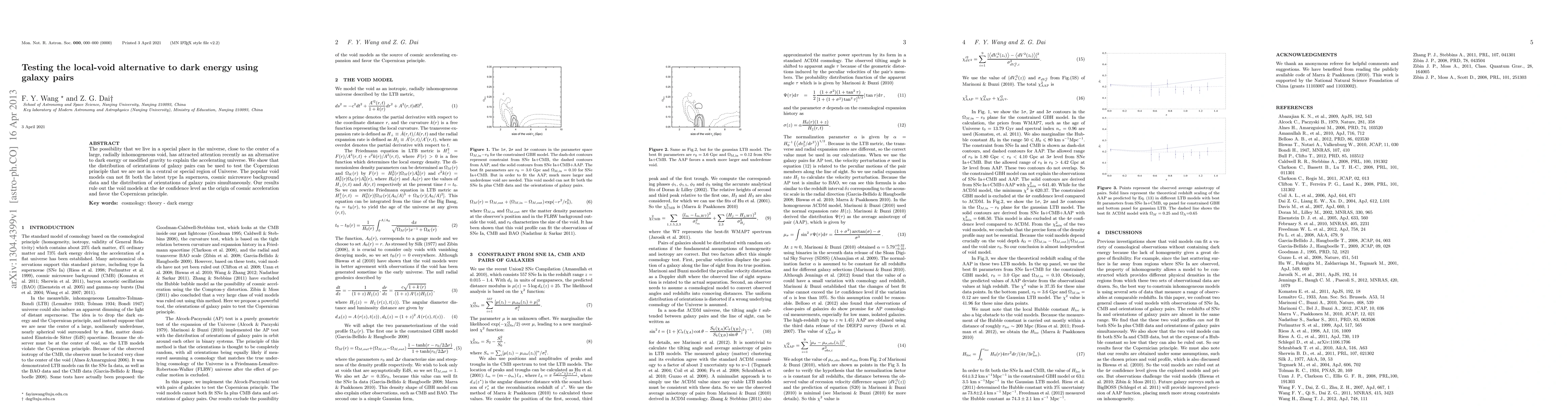 The possibility that we live in a special place in the universe, close to the center of a large, radially inhomogeneous void, has attracted attention recently as an alternative to dark energy or modified gravity to explain the accelerating universe. We show that the distribution of orientations of galaxy pairs can be used to test the Copernican principle that we are not in a central or special region of Universe. The popular void models can not fit both the latest type Ia supernova, cosmic microwave background data and the distribution of orientations of galaxy pairs simultaneously. Our results rule out the void models at the $4\sigma$ confidence level as the origin of cosmic acceleration and favor the Copernican principle.