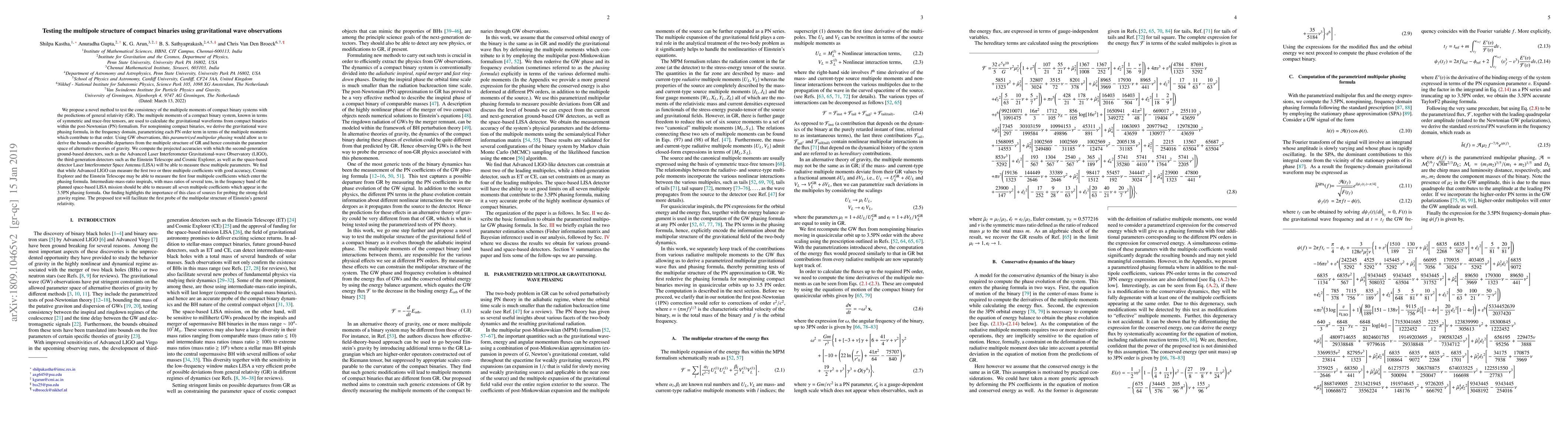 This paper proposes a method to test the multipole structure of compact binary systems using gravitational wave observations, aiming to constrain alternative theories of gravity. It predicts that future detectors like LIGO, Einstein Telescope, and LISA will measure multipole parameters, with LISA being particularly effective for intermediate mass ratio inspirals.