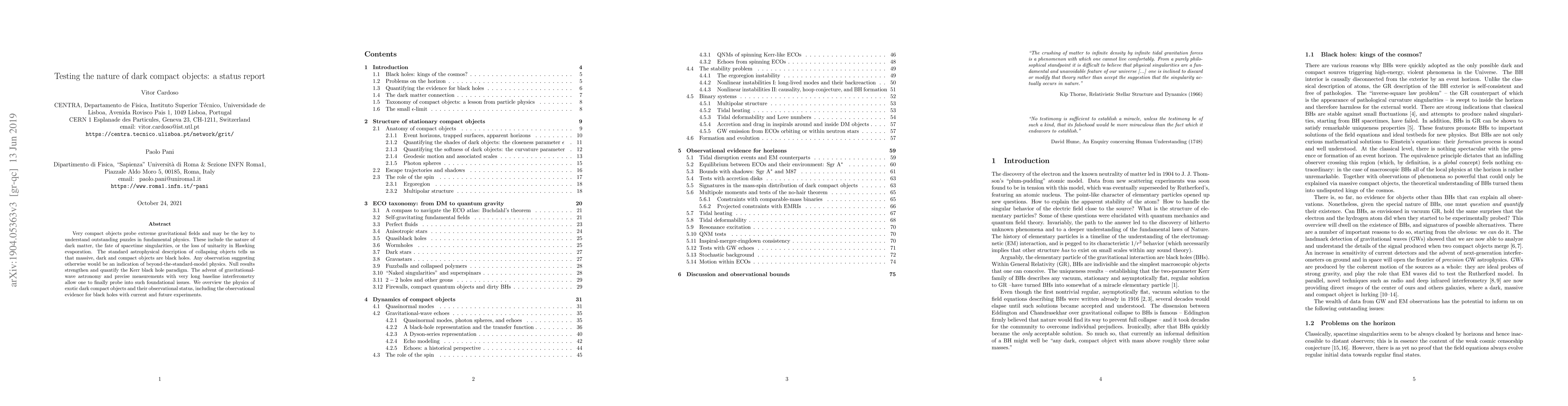 Very compact objects probe extreme gravitational fields and may be the key to understand outstanding puzzles in fundamental physics. These include the nature of dark matter, the fate of spacetime singularities, or the loss of unitarity in Hawking evaporation. The standard astrophysical description of collapsing objects tells us that massive, dark and compact objects are black holes. Any observation suggesting otherwise would be an indication of beyond-the-standard-model physics. Null results strengthen and quantify the Kerr black hole paradigm. The advent of gravitational-wave astronomy and precise measurements with very long baseline interferometry allow one to finally probe into such foundational issues. We overview the physics of exotic dark compact objects and their observational status, including the observational evidence for black holes with current and future experiments.