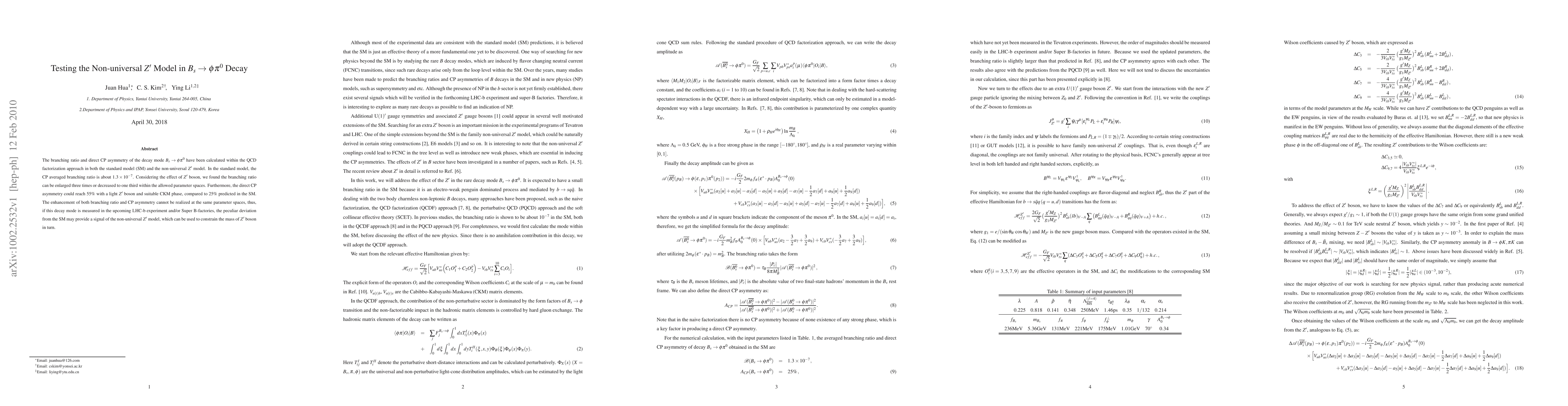 Researchers tested the non-universal Z' model in Bs -> φβπ decay using QCD factorization and found that it can enhance the branching ratio by three times or decrease it to one third and increase direct CP asymmetry to 55%, offering a potential signal for the Z' model's existence.