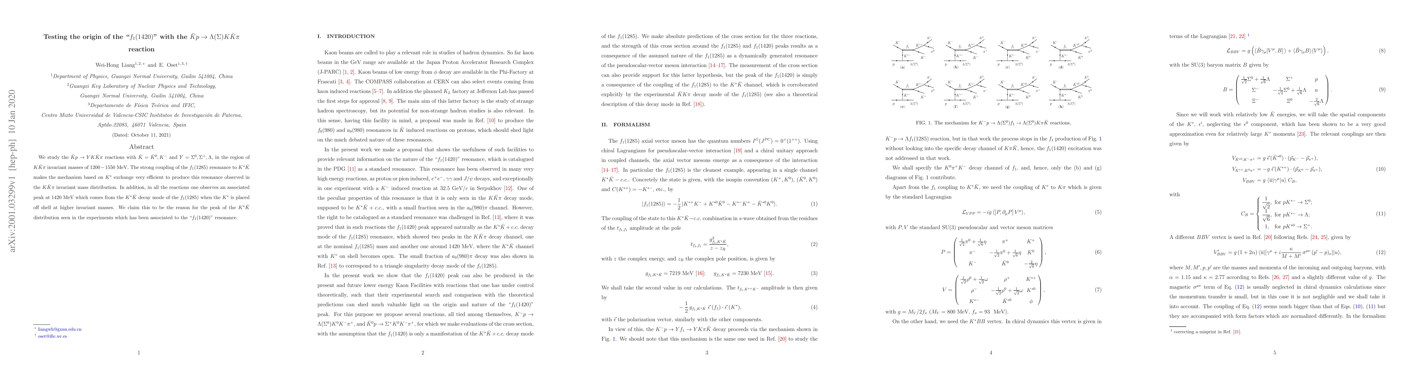 We study the $\bar K p \to Y K\bar K \pi$ reactions with $\bar K = \bar K^0, K^-$ and $Y=\Sigma^0, \Sigma^+, \Lambda$, in the region of $K\bar K \pi$ invariant masses of $1200-1550$ MeV. The strong coupling of the $f_1(1285)$ resonance to $K^* \bar K$ makes the mechanism based on $K^*$ exchange very efficient to produce this resonance observed in the $K\bar K \pi$ invariant mass distribution. In addition, in all the reactions one observes an associated peak at $1420$ MeV which comes from the $K^* \bar K$ decay mode of the $f_1(1285)$ when the $K^*$ is placed off shell at higher invariant masses. We claim this to be the reason for the peak of the $K^* \bar K$ distribution seen in the experiments which has been associated to the "$f_1(1420)$" resonance.