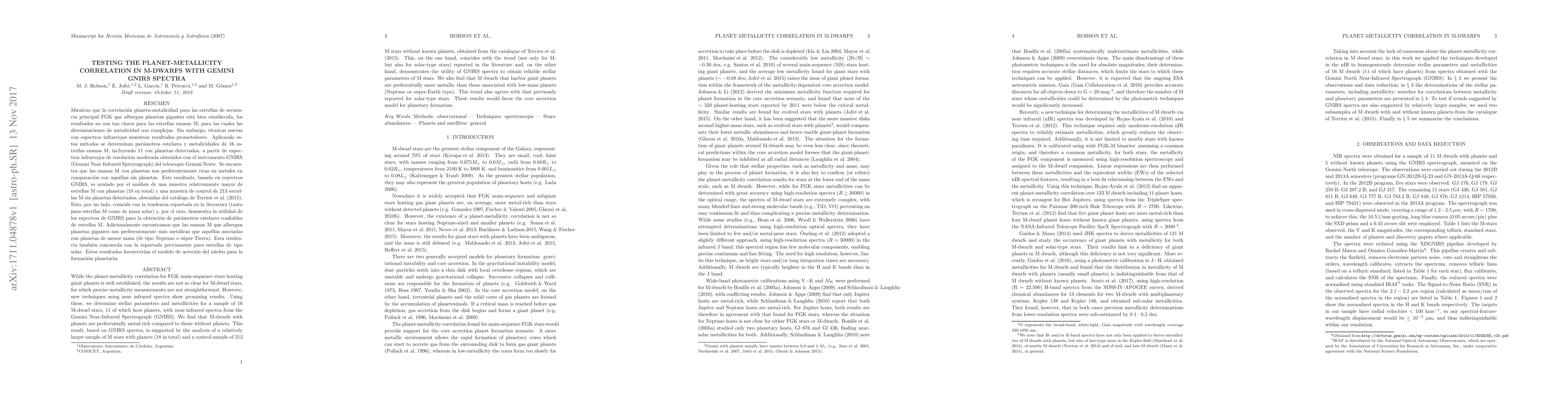 This study investigates the planet-metallicity correlation in M-dwarf stars using Gemini GNIRS spectra, finding that M-dwarfs hosting planets are preferentially metal-rich. The results support the core accretion model for planetary formation and demonstrate the effectiveness of GNIRS for precise stellar parameter measurements.