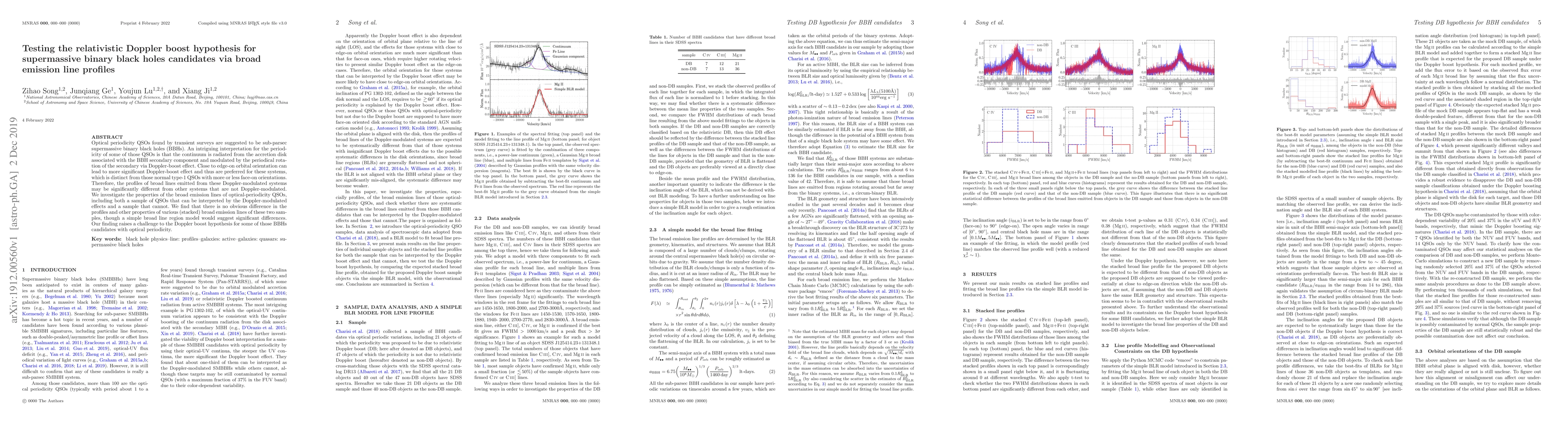 This research investigates the broad emission line profiles of optical-periodicity QSOs, suggested to be supermassive binary black hole systems. Despite theoretical expectations of significant differences due to Doppler-boost effects, no clear distinctions in line profiles or properties were found between QSOs interpretable by Doppler-modulation and those not. This challenges the Doppler boost hypothesis for certain binary black hole candidates with optical periodicity.