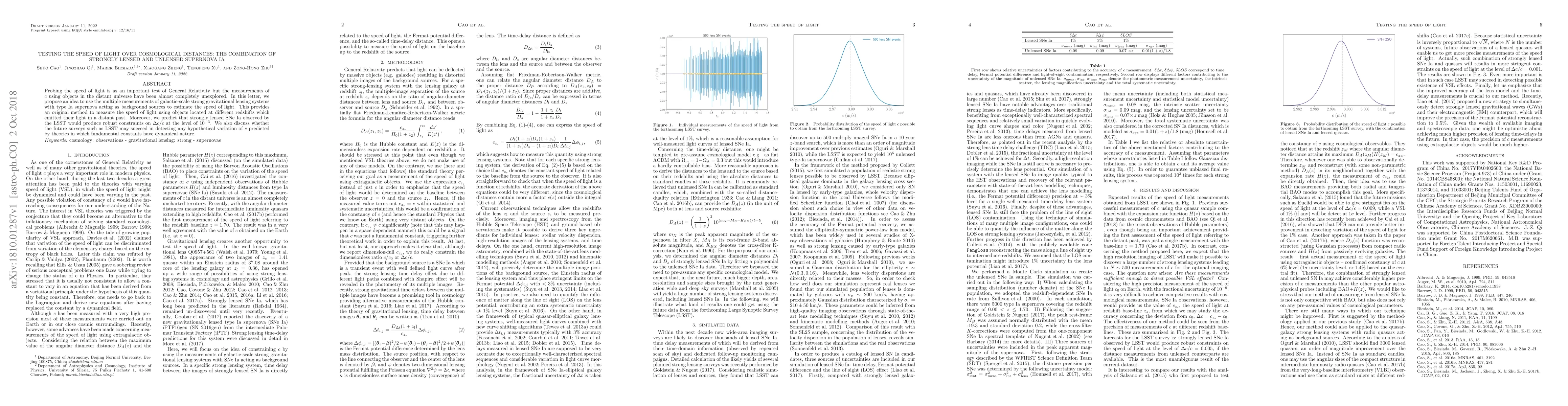 This paper proposes a novel method to measure the speed of light ($c$) using type Ia supernovae (SNe Ia) in strong gravitational lensing systems, providing a way to test General Relativity across cosmological distances. The authors predict that future surveys like the LSST could detect variations in $c$ at the level of $10^{-3}$, exploring the possibility of dynamical fundamental constants.