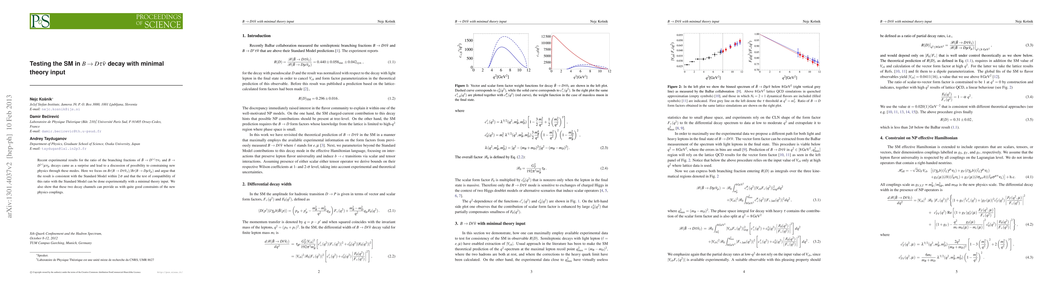 Recent experimental results for the ratio of the branching fractions of $\bar B \to D^{(*)}\tau \nu_\tau$ and $B\to D^{(*)} \mu \nu_\mu$ decays came as a surprise and lead to a discussion of possibility to constraining new physics through these modes. Here we focus on $Br(B \to D \tau \bar\nu_\tau)/Br(B \to D \mu \bar\nu_\mu)$ and argue that the result is consistent with the Standard Model within $2\,\sigma$ and that the test of compatibility of this ratio with the Standard Model can be done experimentally with a minimal theory input. We also show that these two decay channels can provide us with quite good constraints of the new physics couplings.