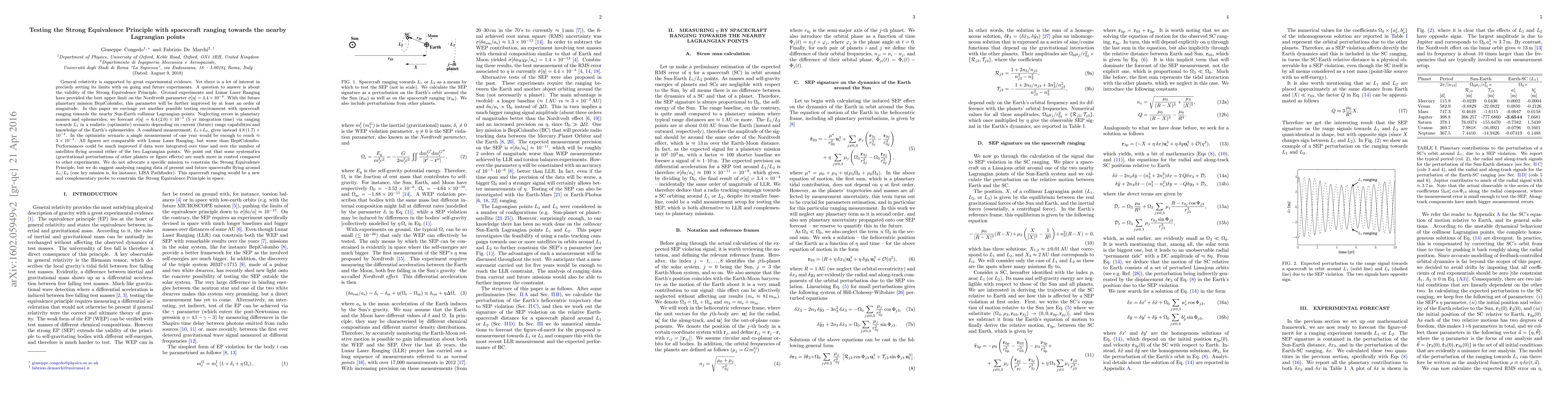 This paper explores the potential of spacecraft ranging towards the Sun-Earth Lagrangian points ($L_1$ and $L_2$) to test the Strong Equivalence Principle, forecasting improvements in the upper limit on the Nordtvedt parameter. While promising, the method is suggested as complementary to other experiments like Lunar Laser Ranging and the BepiColombo mission.