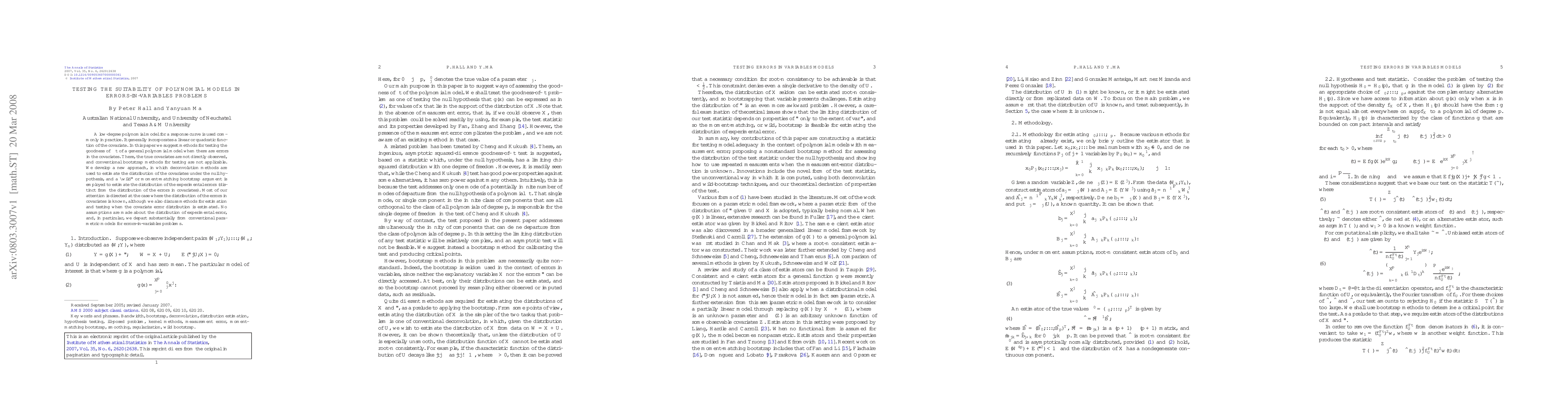 This paper proposes methods for testing the goodness of fit of polynomial models in errors-in-variables problems, using deconvolution and a "wild" bootstrap approach. It focuses on cases where the covariate error distribution is known, but also discusses estimation and testing when it is estimated.