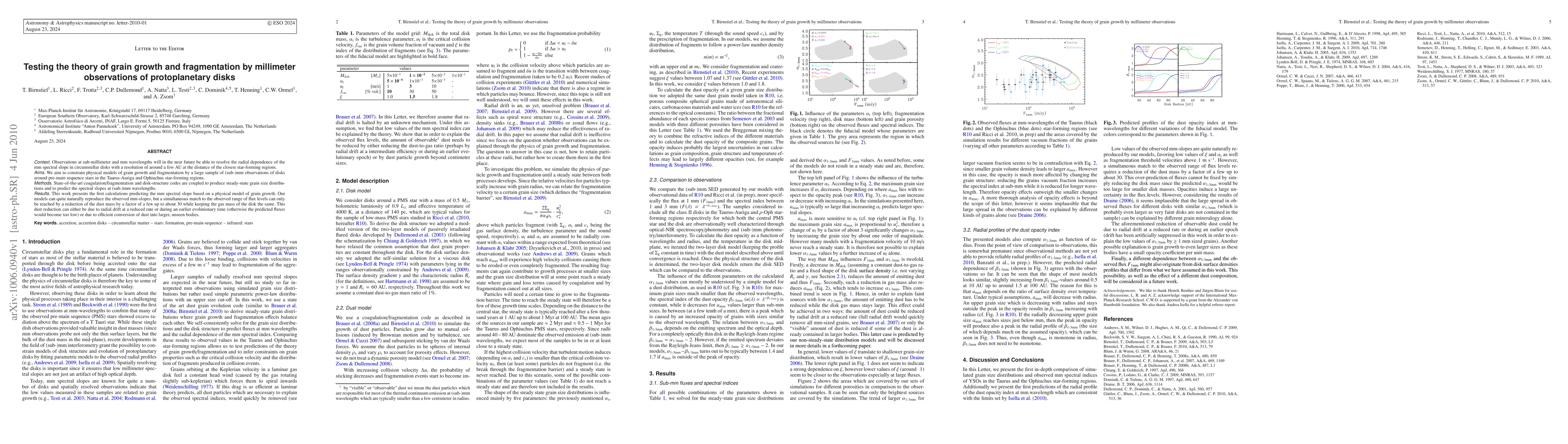 Context. Observations at sub-millimeter and mm wavelengths will in the near future be able to resolve the radial dependence of the mm spectral slope in circumstellar disks with a resolution of around a few AU at the distance of the closest star-forming regions. Aims. We aim to constrain physical models of grain growth and fragmentation by a large sample of (sub-)mm observations of disks around pre-main sequence stars in the Taurus-Auriga and Ophiuchus star-forming regions. Methods. State-of-the-art coagulation/fragmentation and disk-structure codes are coupled to produce steady-state grain size distributions and to predict the spectral slopes at (sub-)mm wavelengths. Results. This work presents the first calculations predicting the mm spectral slope based on a physical model of grain growth. Our models can quite naturally reproduce the observed mm-slopes, but a simultaneous match to the observed range of flux levels can only be reached by a reduction of the dust mass by a factor of a few up to about 30 while keeping the gas mass of the disk the same. This dust reduction can either be due to radial drift at a reduced rate or during an earlier evolutionary time (otherwise the predicted fluxes would become too low) or due to efficient conversion of dust into larger, unseen bodies.