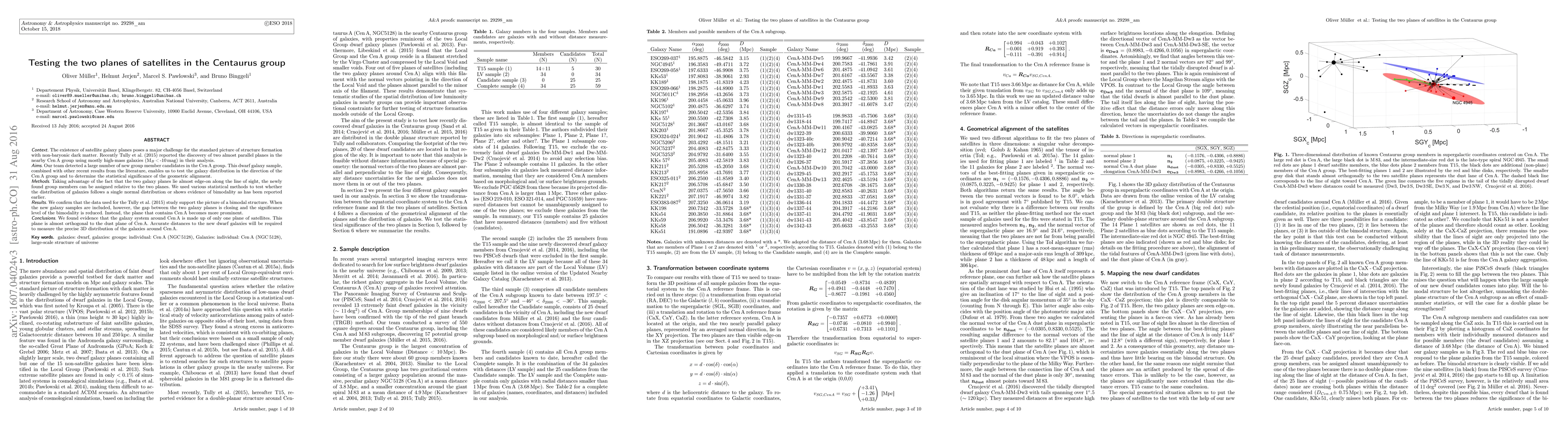 This study investigates the satellite galaxy planes in the Centaurus Group, confirming earlier findings of two almost parallel planes but showing that the inclusion of new dwarf galaxy candidates reduces the significance of the bimodal structure. The data suggest that the galaxy system around Cen A is primarily composed of a single plane of satellites.