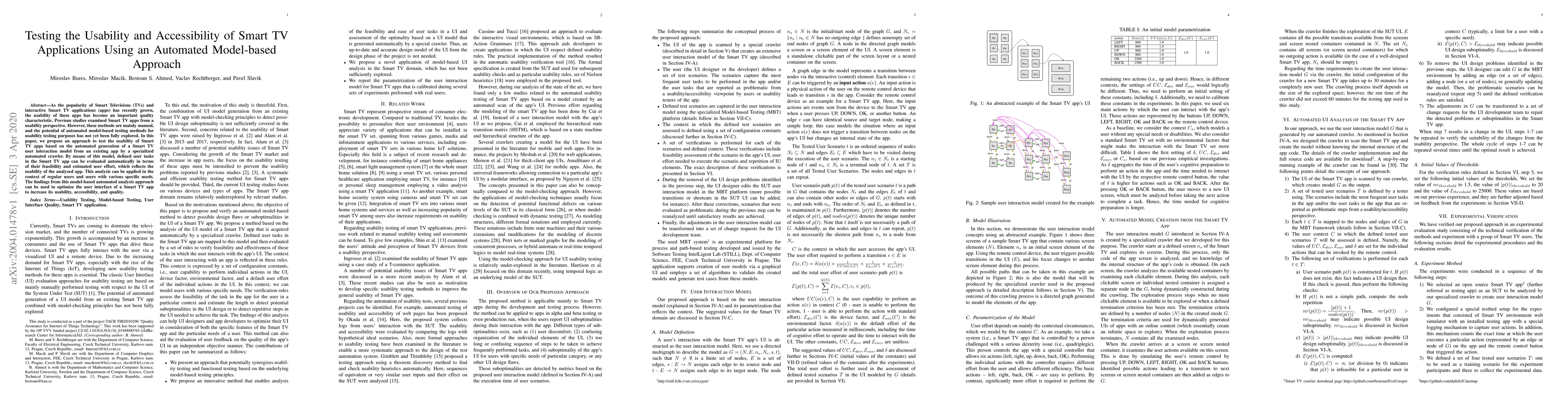 This work is novel as it introduces an automated model-based testing approach specifically tailored for Smart TV applications, addressing the gap in current usability testing methods that are primarily manual and not optimized for Smart TV interfaces.