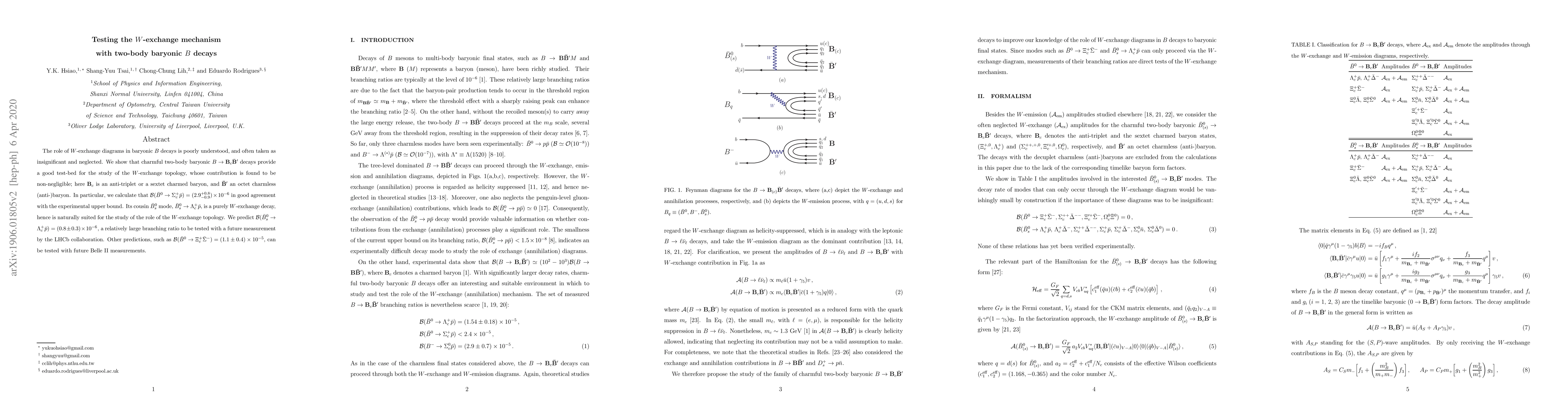 This paper investigates the role of $W$-exchange diagrams in baryonic $B$ decays, finding significant contributions in charmful two-body decays like $\bar B^0\to\Sigma_c^{+}\bar p$ and $\bar B_s^0\to\Lambda^+_c\bar p$. It predicts branching ratios for these decays to be tested by LHCb and Belle II experiments.