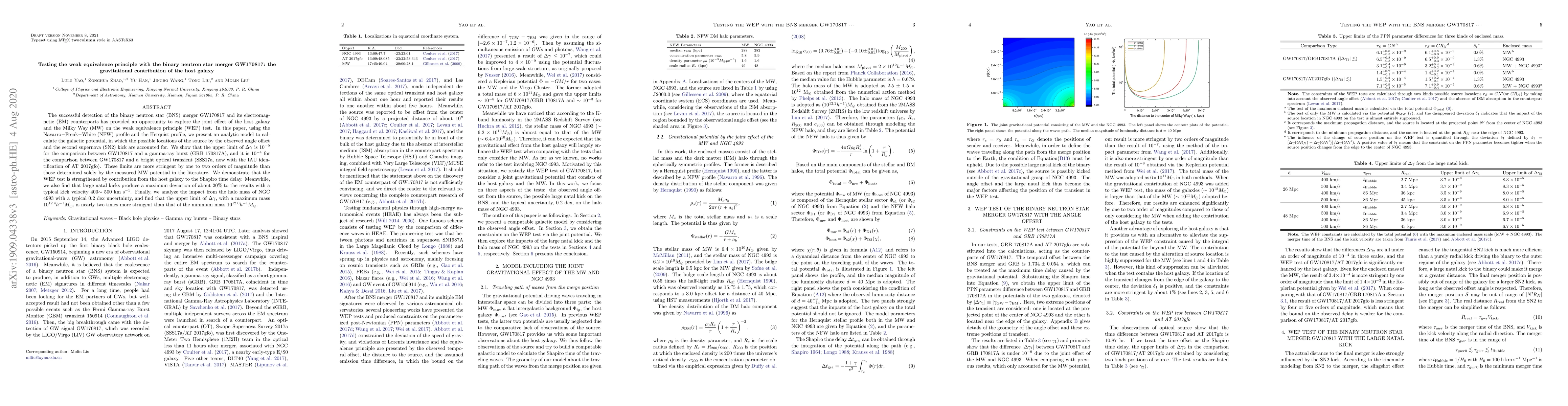 Researchers tested the weak equivalence principle using data from the binary neutron star merger GW170817, finding limits of $10^{-9}$ to $10^{-4}$ for the Milky Way's effect on time delay.