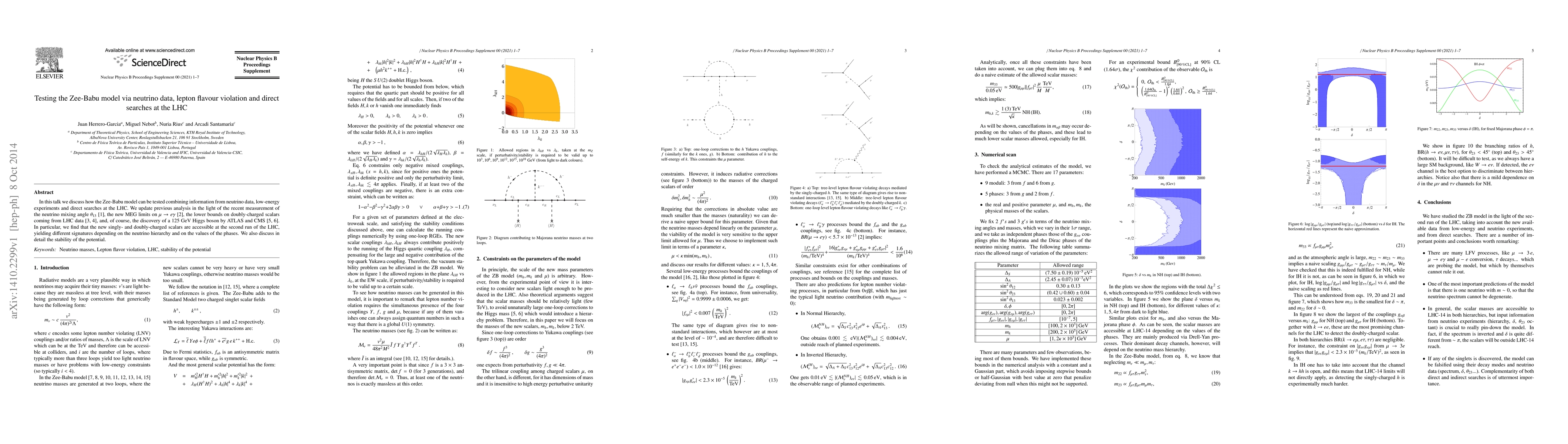We discuss how the Zee-Babu model can be tested combining information from neutrino data, low-energy experiments and direct searches at the LHC. We update previous analysis in the light of the recent measurement of the neutrino mixing angle $\theta_{13}$, the new MEG limits on $\mu \rightarrow e \gamma$, the lower bounds on doubly-charged scalars coming from LHC data, and, of course, the discovery of a 125 GeV Higgs boson by ATLAS and CMS. In particular, we find that the new singly- and doubly-charged scalars are accessible at the second run of the LHC, yielding different signatures depending on the neutrino hierarchy and on the values of the phases. We also discuss in detail the stability of the potential.