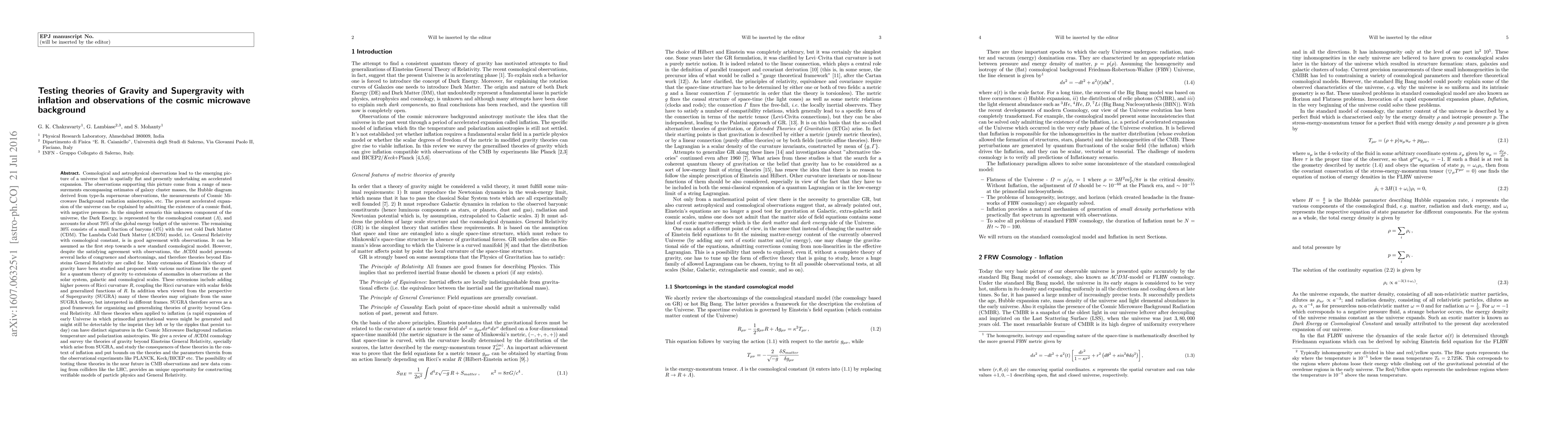 This review paper explores alternative theories of gravity that arise from Supergravity, testing their signatures in Cosmic Microwave Background radiation temperature and polarization anisotropies to provide new opportunities for constructing verifiable models of particle physics and General Relativity.