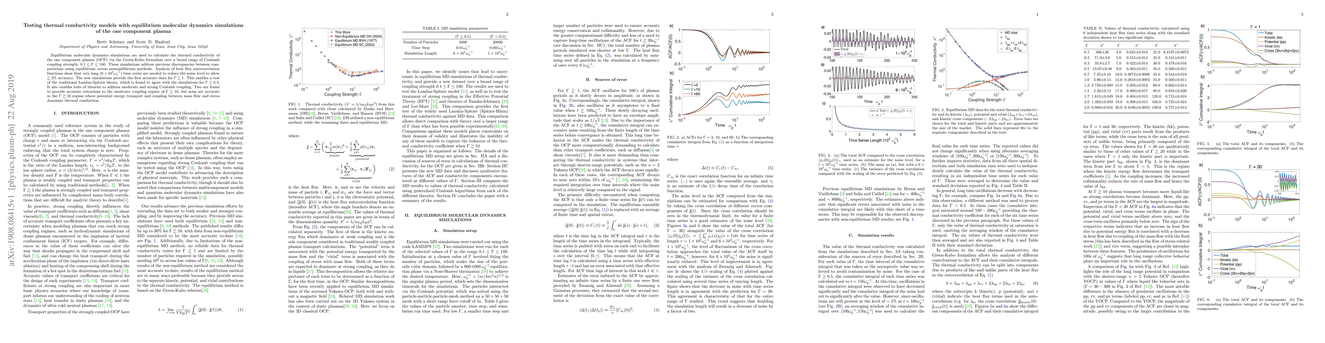 This paper uses equilibrium molecular dynamics simulations to accurately calculate thermal conductivity in one component plasmas, finding agreement with Landau-Spitzer theory for weak coupling and identifying limitations in existing models for stronger coupling.