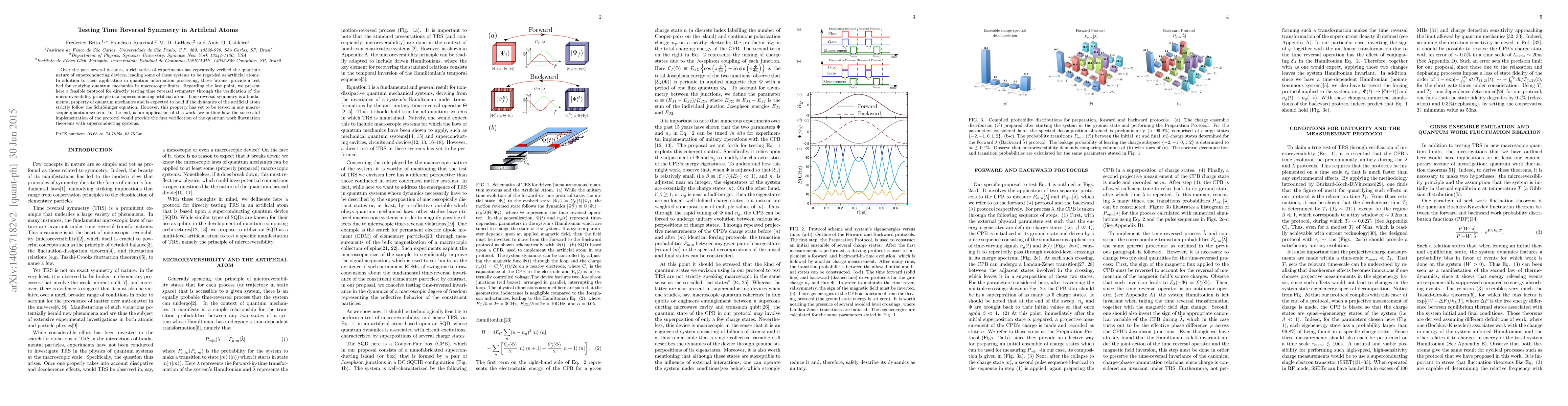 Over the past several decades, a rich series of experiments has repeatedly verified the quantum nature of superconducting devices, leading some of these systems to be regarded as artificial atoms. In addition to their application in quantum information processing, these `atoms' provide a test bed for studying quantum mechanics in macroscopic limits. Regarding the last point, we present here a feasible protocol for directly testing time reversal symmetry through the verification of the microreversibility principle in a superconducting artificial atom. Time reversal symmetry is a fundamental property of quantum mechanics and is expected to hold if the dynamics of the artificial atom strictly follow the Schr\"odinger equation. However, this property has yet to be tested in any macroscopic quantum system. In the end, as an application of this work, we outline how the successful implementation of the protocol would provide the first verification of the quantum work fluctuation theorems with superconducting systems.