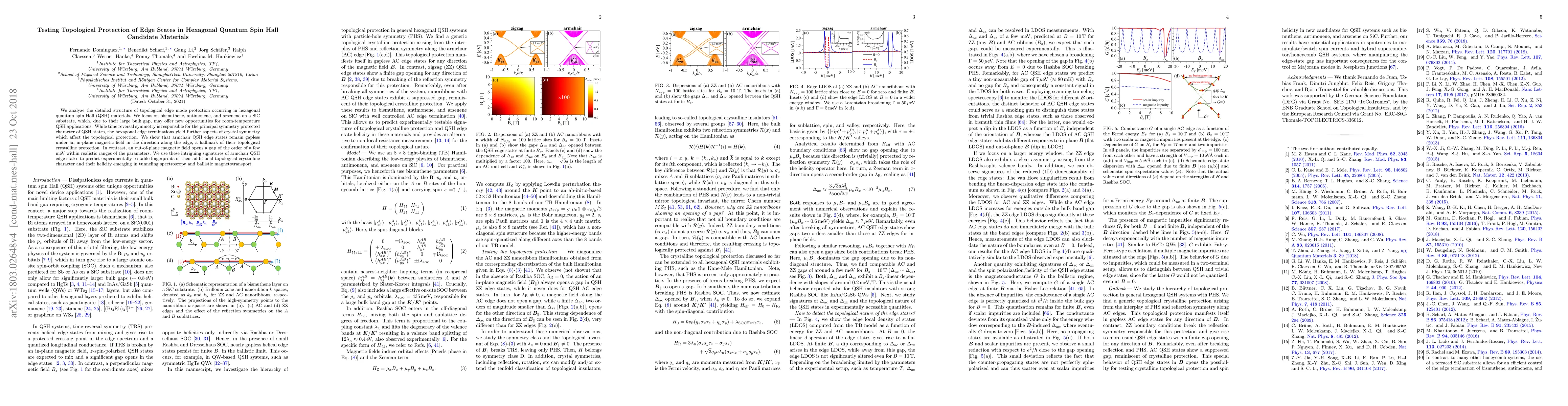 This paper investigates the topological protection of edge states in hexagonal quantum spin Hall materials like bismuthene, antimonene, and arsenene on a SiC substrate. It reveals that armchair edges remain gapless under in-plane magnetic fields, indicating topological crystalline protection, while out-of-plane fields induce a small gap, suggesting potential for room-temperature applications.