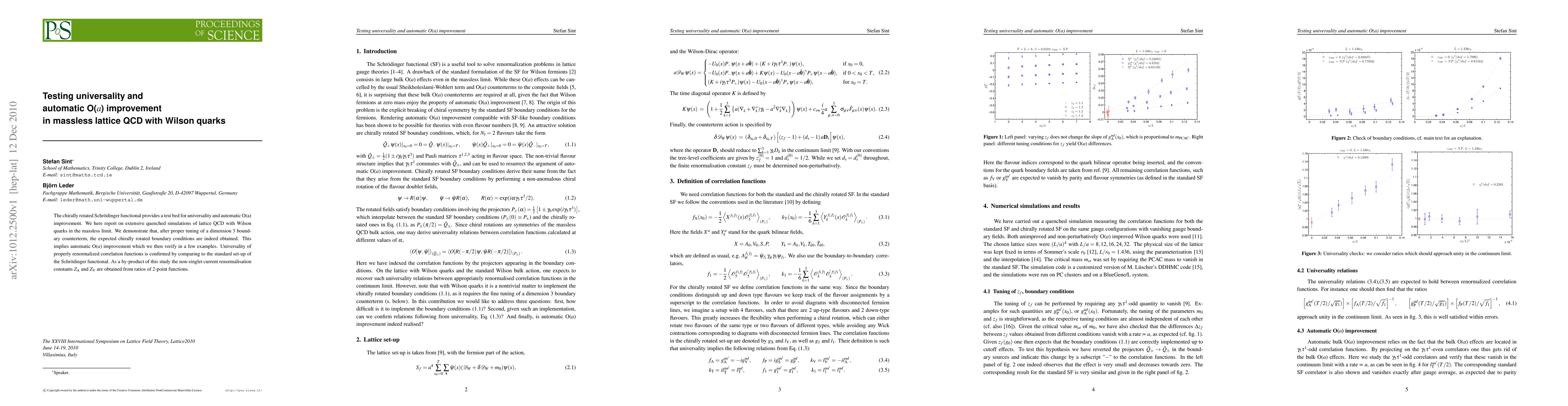 This paper tests universality and automatic O(a) improvement in massless lattice QCD using Wilson quarks, demonstrating successful chirally rotated boundary conditions and confirming universality through comparisons with the standard Schrödinger functional setup. Additionally, it reports on the determination of non-singlet current renormalisation constants Z_A and Z_V from 2-point function ratios.