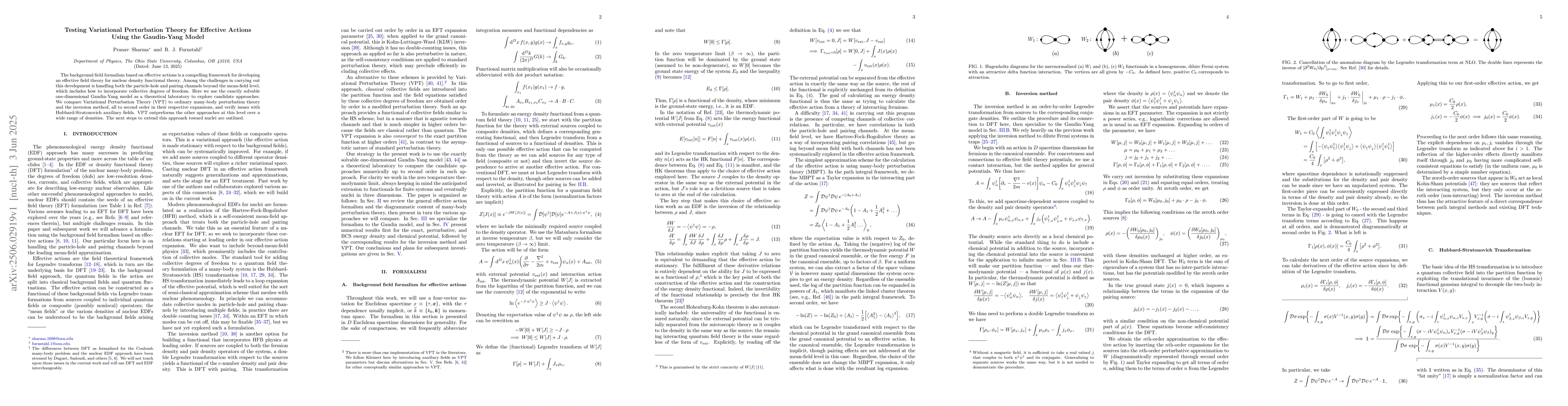 The background field formalism based on effective actions is a compelling framework for developing an effective field theory for nuclear density functional theory. Among the challenges in carrying out this development is handling both the particle-hole and pairing channels beyond the mean-field level, which includes how to incorporate collective degrees of freedom. Here we use the exactly solvable one-dimensional Gaudin-Yang model as a theoretical laboratory to explore candidate approaches. We compare Variational Perturbation Theory (VPT) to ordinary many-body perturbation theory and the inversion method, all to second order in their respective expansions, and verify issues with Hubbard-Stratonovich auxiliary fields. VPT outperforms the other approaches at this level over a wide range of densities. The next steps to extend this approach toward nuclei are outlined.