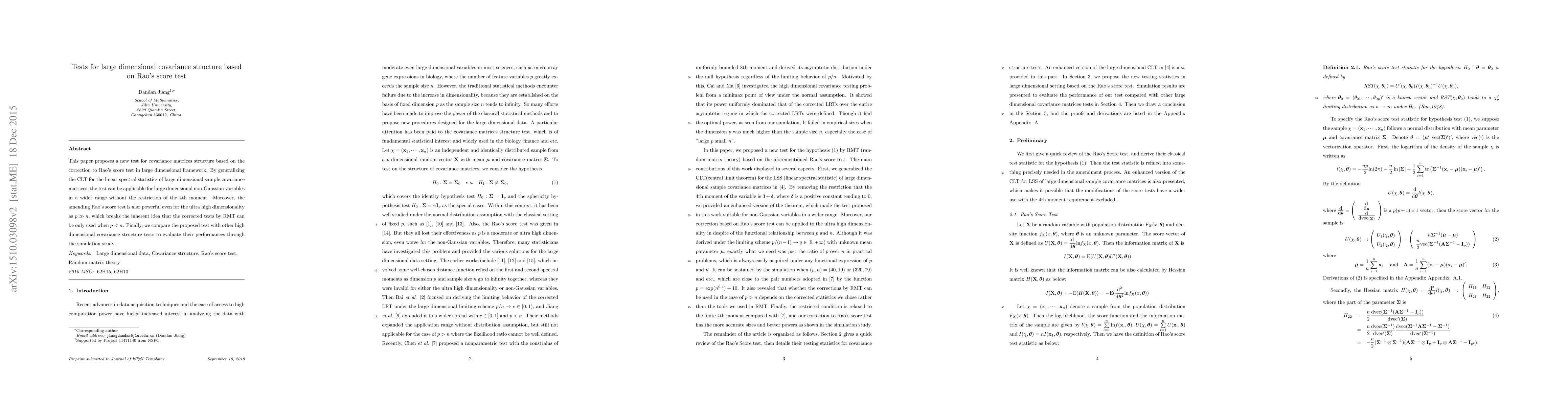 moment. Moreover, the amending Rao's score test is also powerful even for the