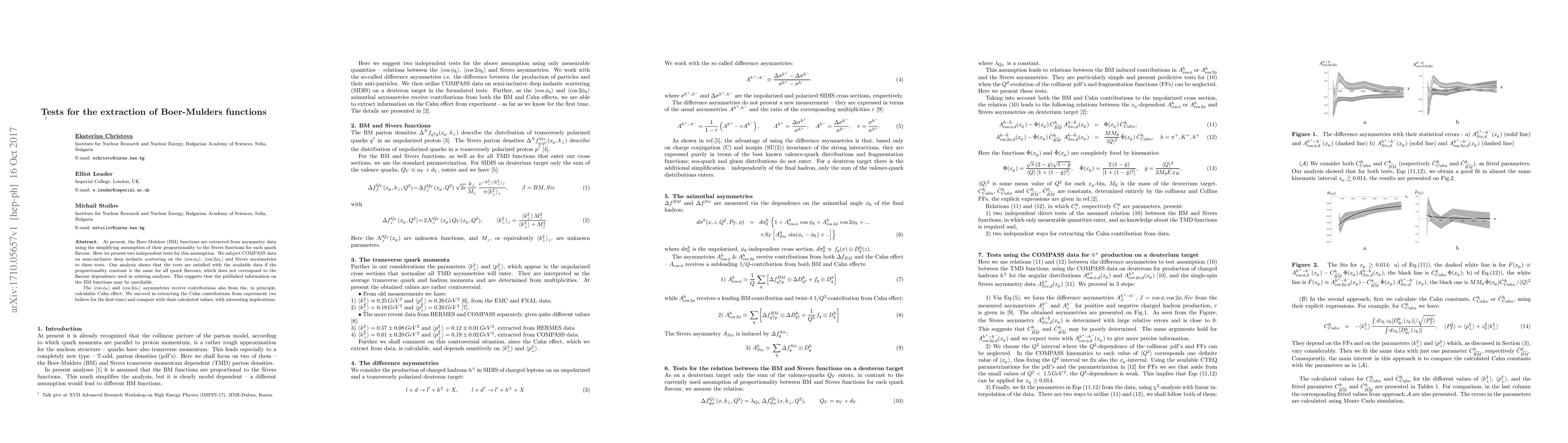 At present, the Boer-Mulders (BM) functions are extracted from asymmetry data using the simplifying assumption of their proportionality to the Sivers functions for each quark flavour. Here we present two independent tests for this assumption. We subject COMPASS data on semi-inclusive deep inelastic scattering on the $\langle\cos\phi_h\rangle$, $\langle\cos 2\phi_h\rangle$ and Sivers asymmetries to these tests. Our analysis shows that the tests are satisfied with the available data if the proportionality constant is the same for all quark flavours, which does not correspond to the flavour dependence used in existing analyses. This suggests that the published information on the BM functions may be unreliable. The $\langle\cos\phi_h\rangle$ and $\langle\cos 2 \phi_h\rangle$ asymmetries receive contributions also from the, in principle, calculable Cahn effect. We succeed in extracting the Cahn contributions from experiment (we believe for the first time) and compare with their calculated values, with interesting implications.