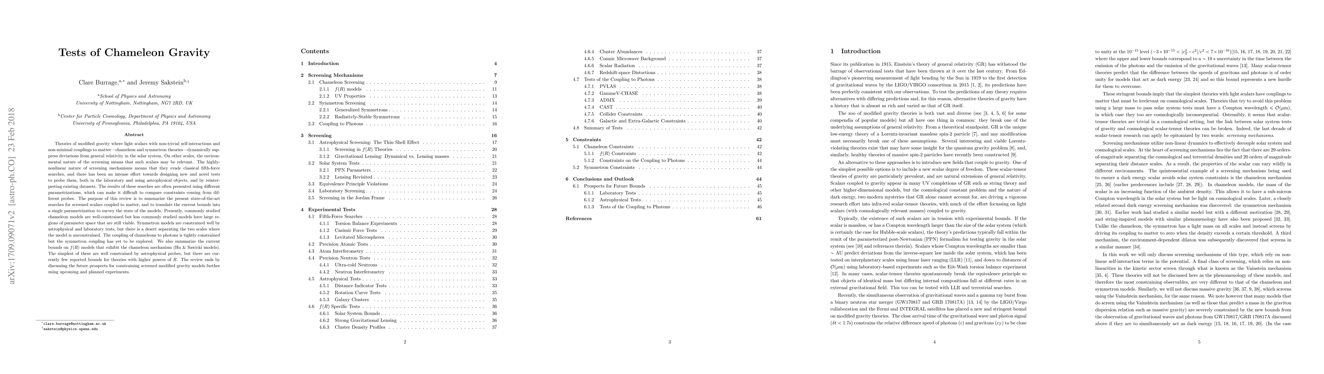 Theories of modified gravity where light scalars with non-trivial self-interactions and non-minimal couplings to matter-chameleon and symmetron theories-dynamically suppress deviations from general relativity in the solar system. On other scales, the environmental nature of the screening means that such scalars may be relevant. The highly-nonlinear nature of screening mechanisms means that they evade classical fifth-force searches, and there has been an intense effort towards designing new and novel tests to probe them, both in the laboratory and using astrophysical objects, and by reinterpreting existing datasets. The results of these searches are often presented using different parametrizations, which can make it difficult to compare constraints coming from different probes. The purpose of this review is to summarize the present state-of-the-art searches for screened scalars coupled to matter, and to translate the current bounds into a single parametrization to survey the state of the models. Presently, commonly studied chameleon models are well-constrained but less commonly studied models have large regions of parameter space that are still viable. Symmetron models are constrained well by astrophysical and laboratory tests, but there is a desert separating the two scales where the model is unconstrained. The coupling of chameleons to photons is tightly constrained but the symmetron coupling has yet to be explored. We also summarize the current bounds on $f(R)$ models that exhibit the chameleon mechanism (Hu \& Sawicki models). The simplest of these are well constrained by astrophysical probes, but there are currently few reported bounds for theories with higher powers of $R$. The review ends by discussing the future prospects for constraining screened modified gravity models further using upcoming and planned experiments.