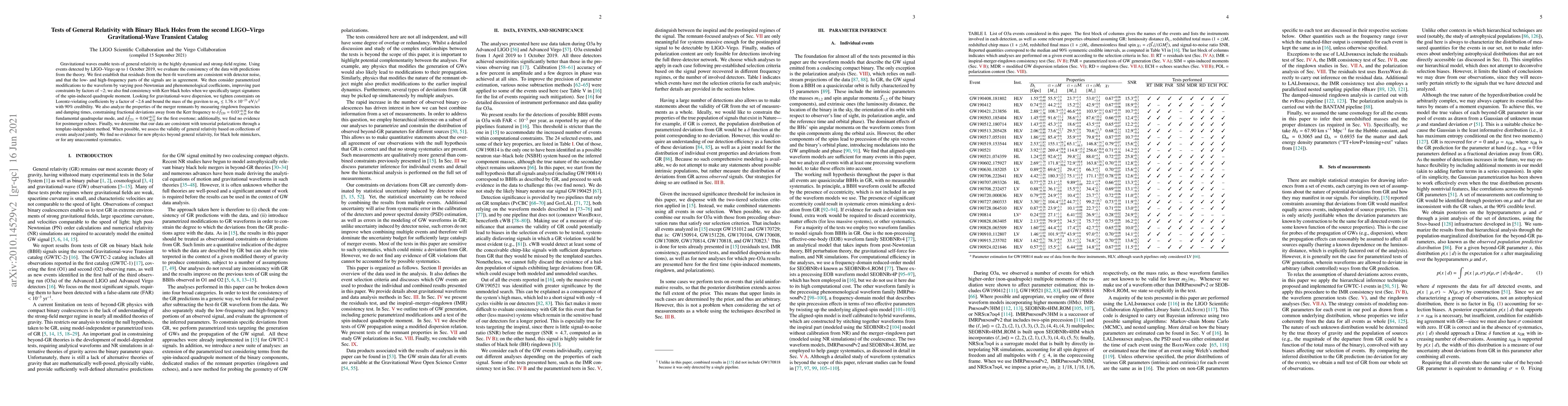 Gravitational waves enable tests of general relativity in the highly dynamical and strong-field regime. Using events detected by LIGO-Virgo up to 1 October 2019, we evaluate the consistency of the data with predictions from the theory. We first establish that residuals from the best-fit waveform are consistent with detector noise, and that the low- and high-frequency parts of the signals are in agreement. We then consider parametrized modifications to the waveform by varying post-Newtonian and phenomenological coefficients, improving past constraints by factors of ${\sim}2$; we also find consistency with Kerr black holes when we specifically target signatures of the spin-induced quadrupole moment. Looking for gravitational-wave dispersion, we tighten constraints on Lorentz-violating coefficients by a factor of ${\sim}2.6$ and bound the mass of the graviton to $m_g \leq 1.76 \times 10^{-23} \mathrm{eV}/c^2$ with 90% credibility. We also analyze the properties of the merger remnants by measuring ringdown frequencies and damping times, constraining fractional deviations away from the Kerr frequency to $\delta \hat{f}_{220} = 0.03^{+0.38}_{-0.35}$ for the fundamental quadrupolar mode, and $\delta \hat{f}_{221} = 0.04^{+0.27}_{-0.32}$ for the first overtone; additionally, we find no evidence for postmerger echoes. Finally, we determine that our data are consistent with tensorial polarizations through a template-independent method. When possible, we assess the validity of general relativity based on collections of events analyzed jointly. We find no evidence for new physics beyond general relativity, for black hole mimickers, or for any unaccounted systematics.